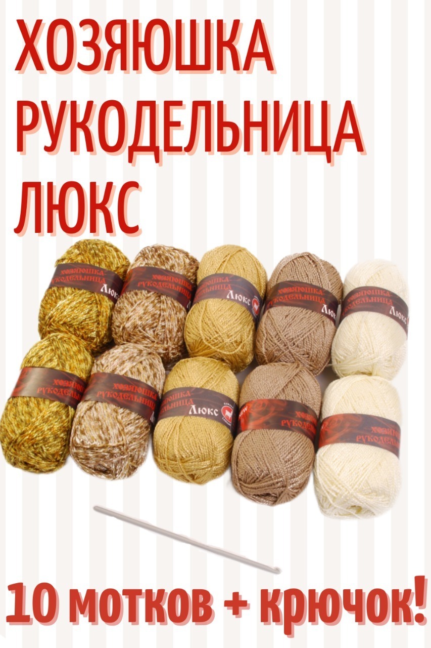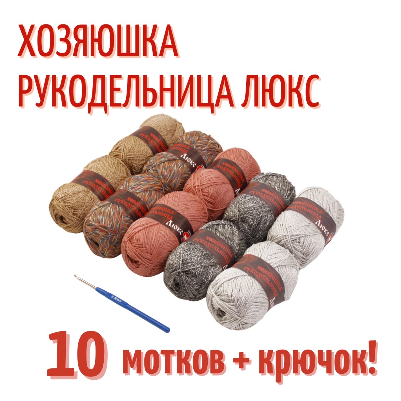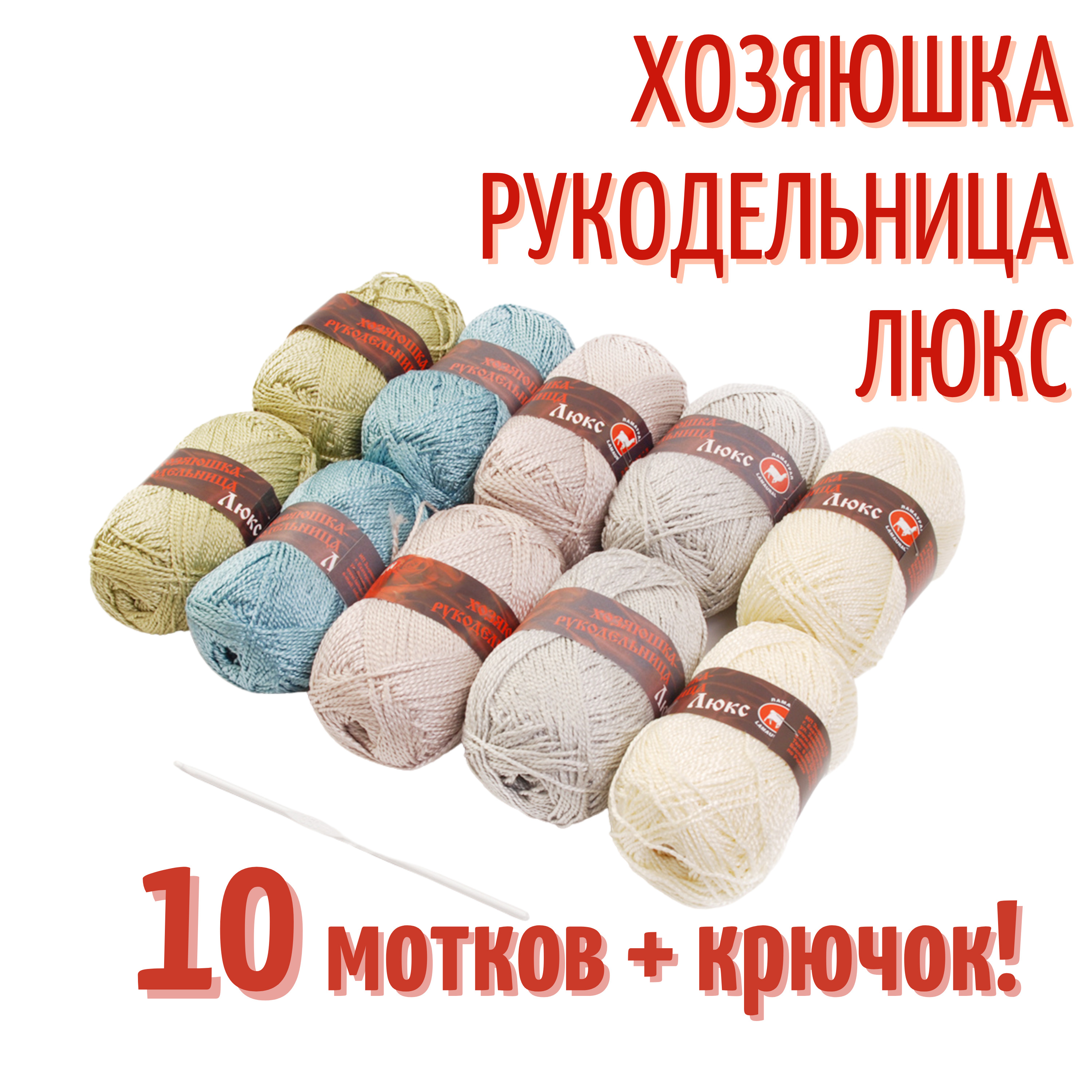 Пряжа Люкс Хозяюшка-рукодельница №1, 50 г/140м, ассорти 10 штук + крючок №3.5