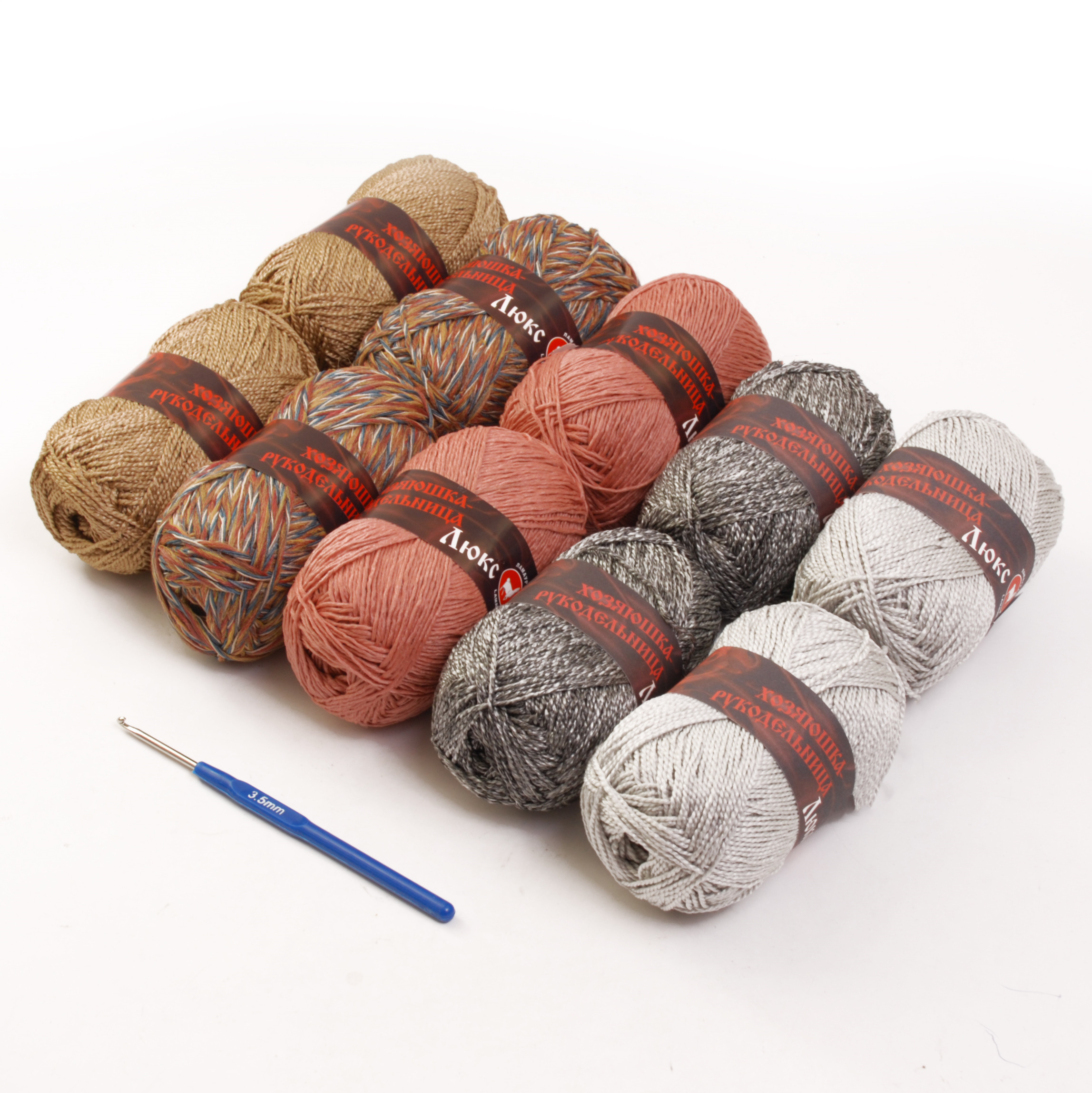 Пряжа Хозяюшка-рукодельница Люкс №13, 50 г/140м, ассорти 10 шт + крючок №3.5