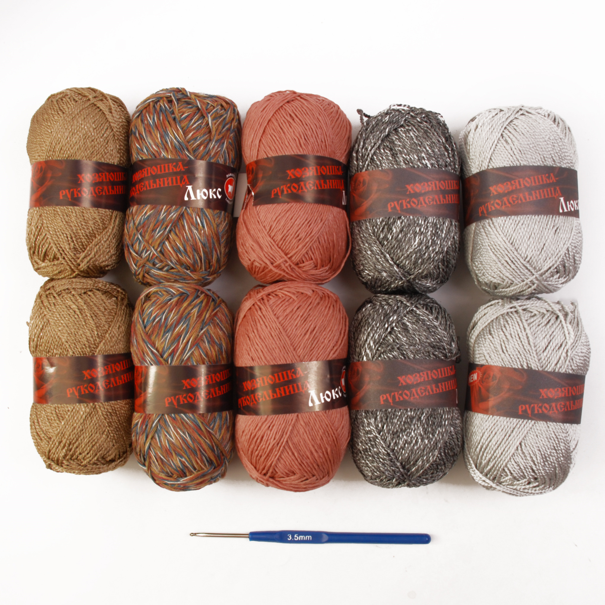Пряжа Хозяюшка-рукодельница Люкс №4, 50 г/140м, ассорти 10 шт + крючок №3.5