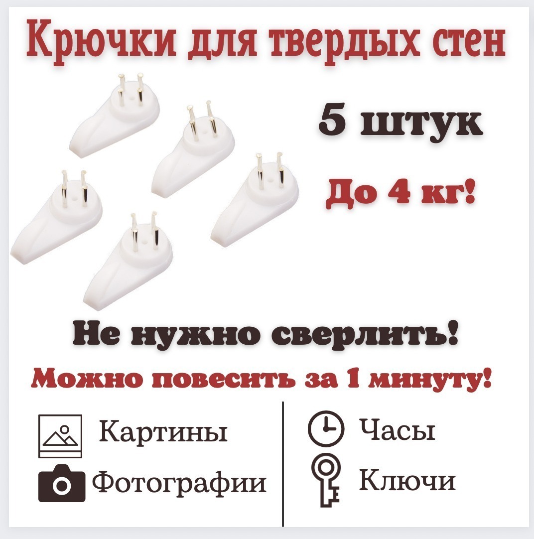 Крючок-крепление для твердых стен, большой до 4 кг, уп. 5 шт