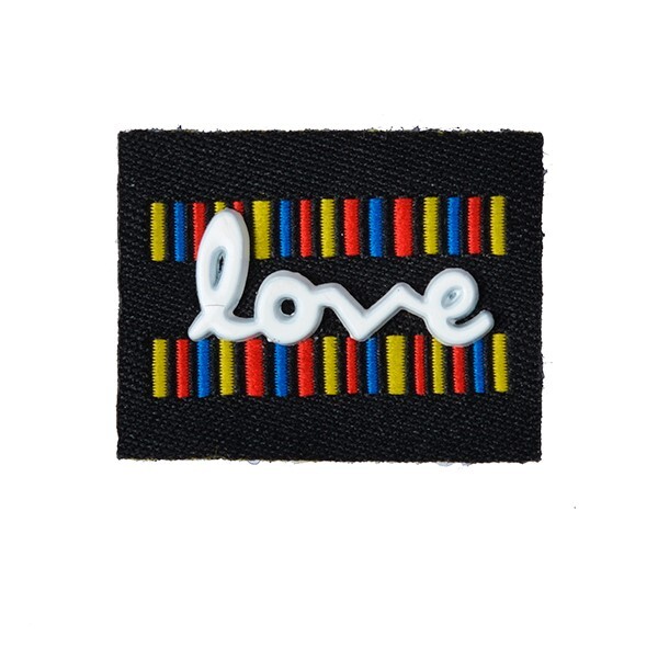 Нашивка "Love" черного цвета, с белой металлической надписью, 3х2,3 см.