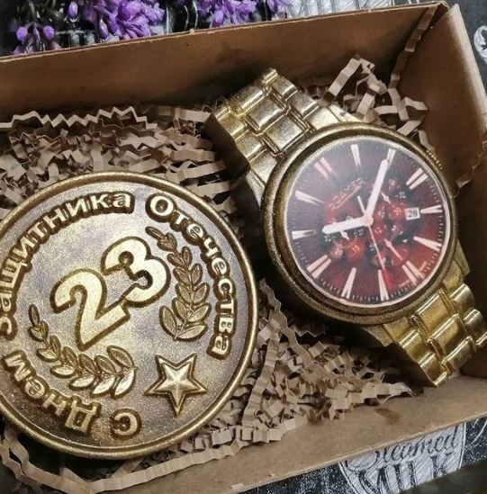 Набор пластиковых форм для мыла к 23 февраля " Часы и 23 февраля-круг"-2 шт.