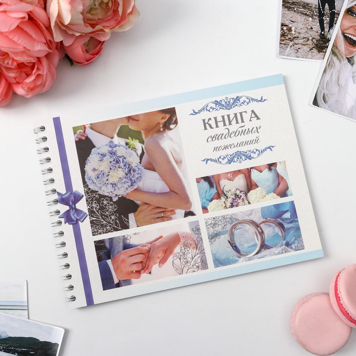 Книга пожеланий для молодоженов на свадьбе в синих и голубых оттенках 24 листа