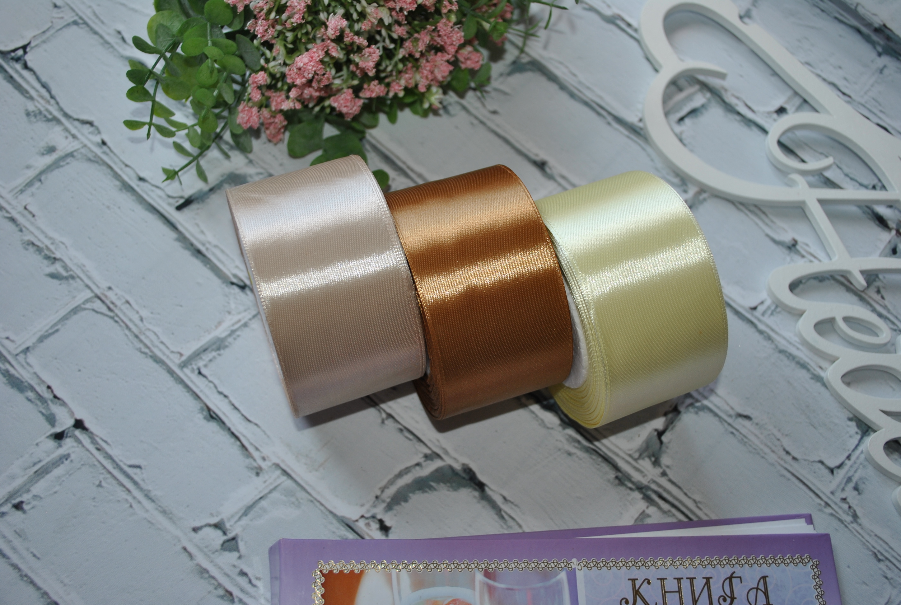 Набор ярких атласных лент (три рулона) для украшения свадебных машин 70 метров, ширина 5 см.