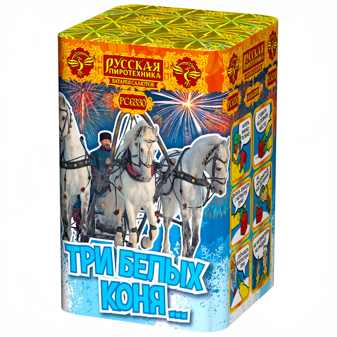 Фейерверк РС6330 Три белых коня .... 0,8"х16 залпов
