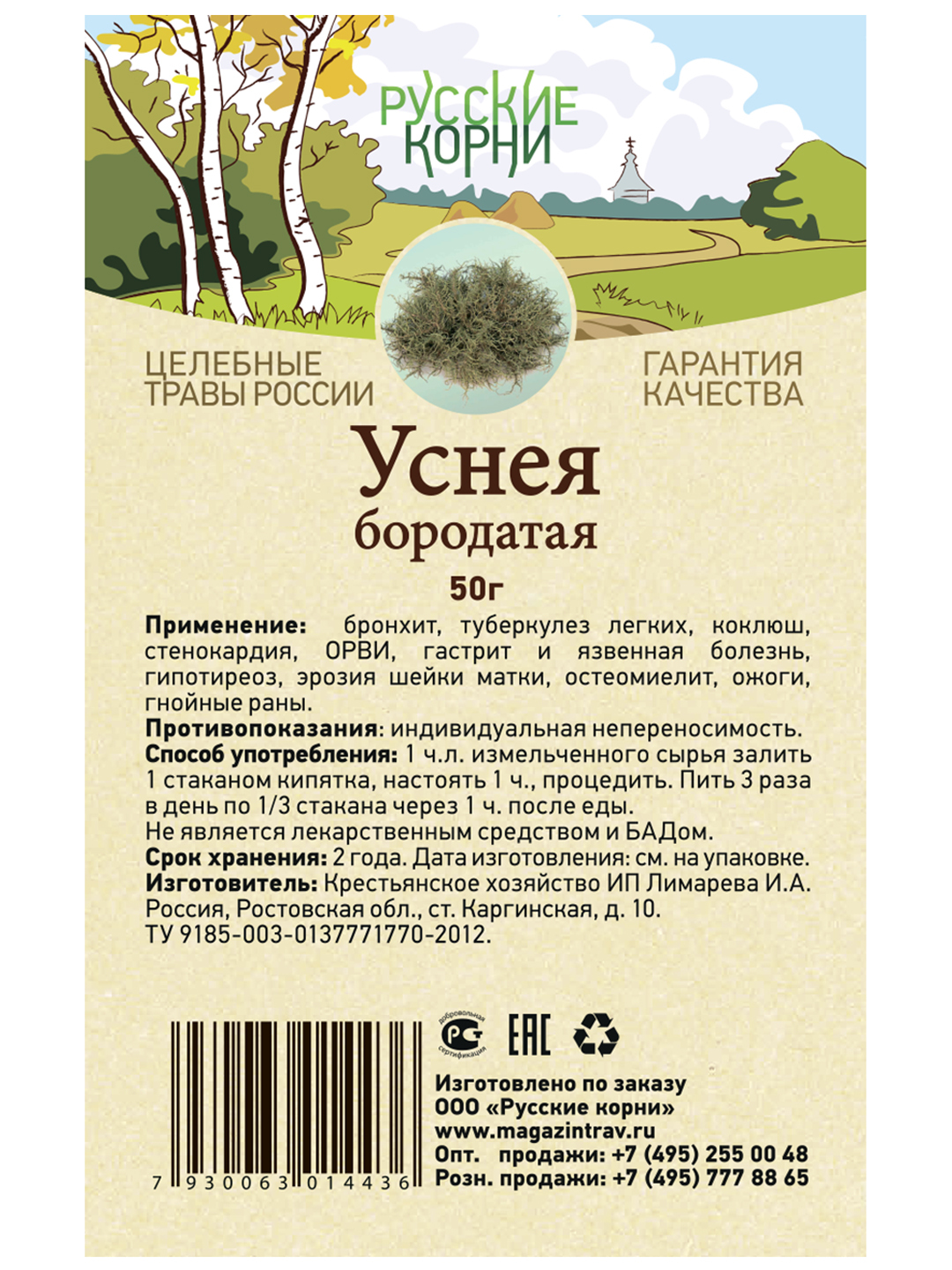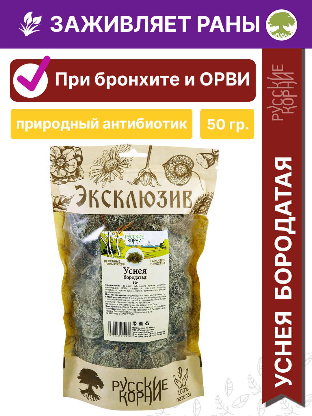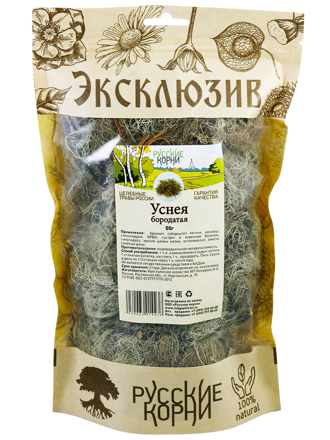 Уснея бородатая трава 50 гр. Русские Корни