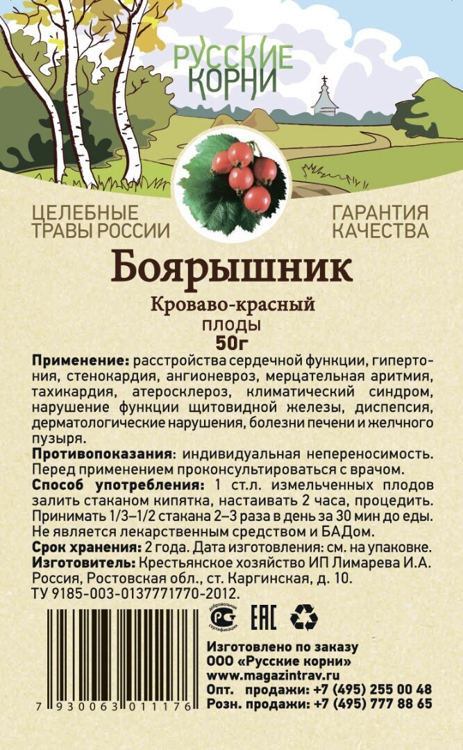 Русские Корни, Боярышник кроваво-красный плоды 50 гр.