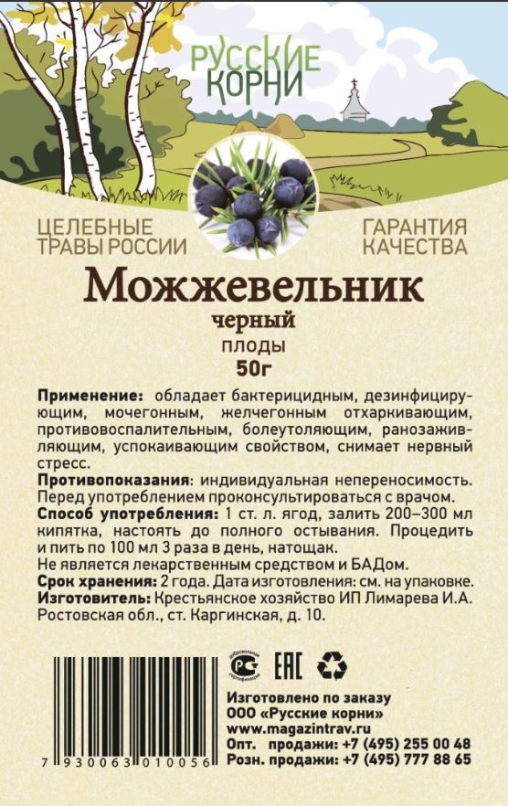 Можжевельник черный ягода сушеная 50 гр. Русские Корни