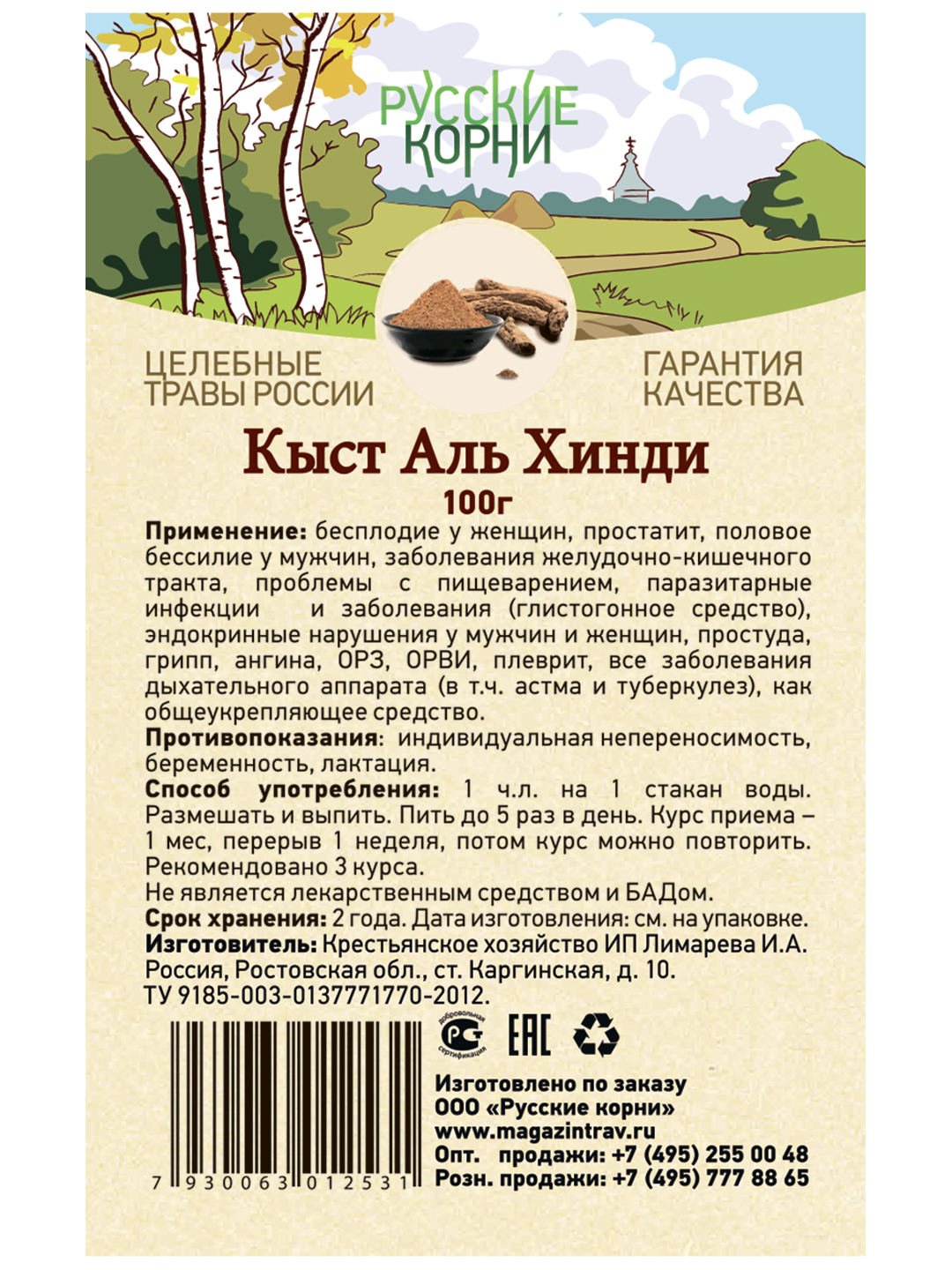 Русские Корни, Кыст Аль Хинди корень молотый 100 гр.