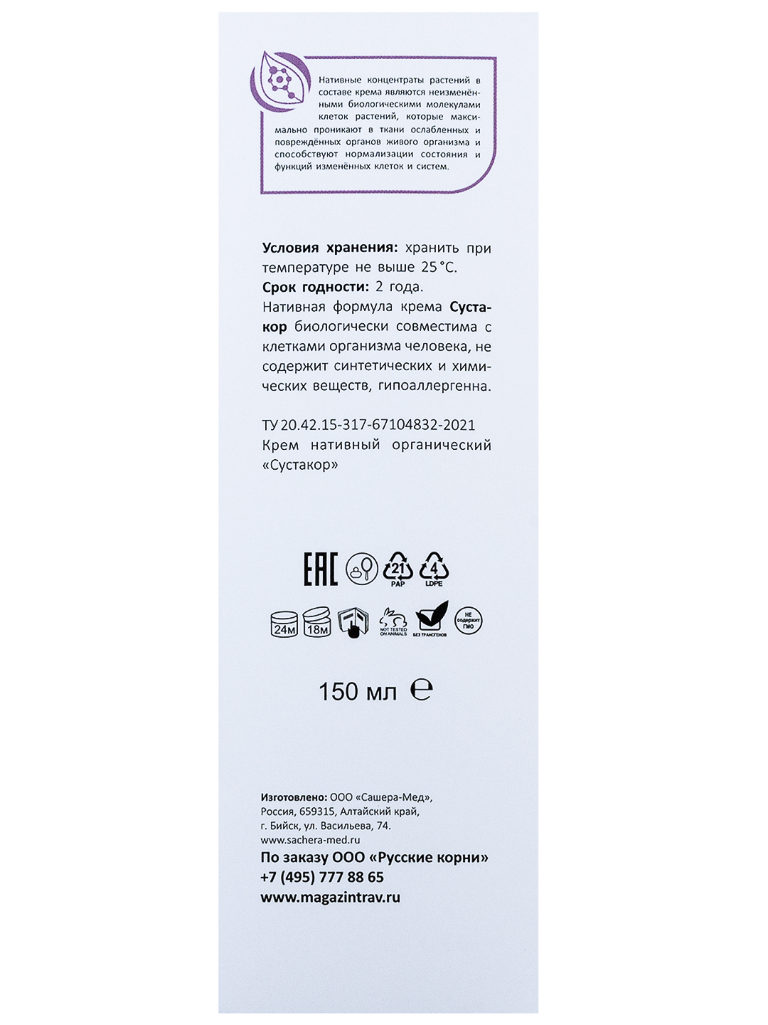 Сустакор / Сустарад крем для суставов и связок натуральный 150 мл., от боли, от растяжений