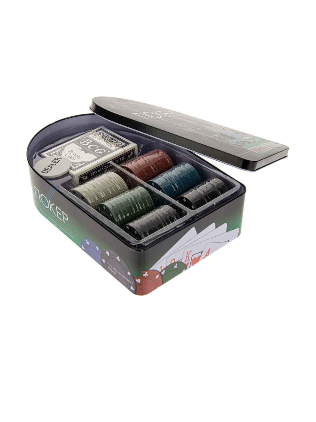 Игра настольная "Покер" в металлической коробке Русские Подарки