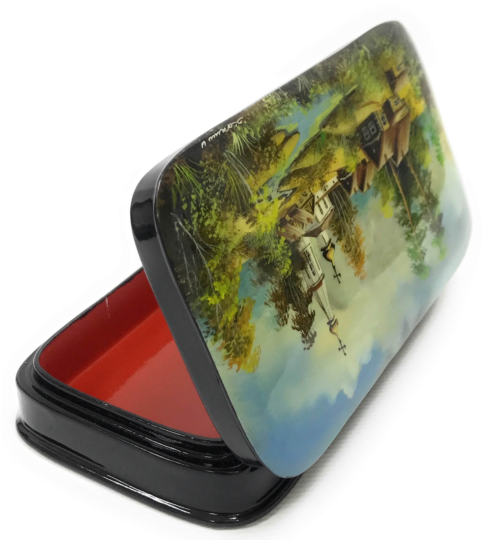 Шкатулка авторская для украшений с лаковой миниатюрой "Лето". Ручная работа, Холуй.