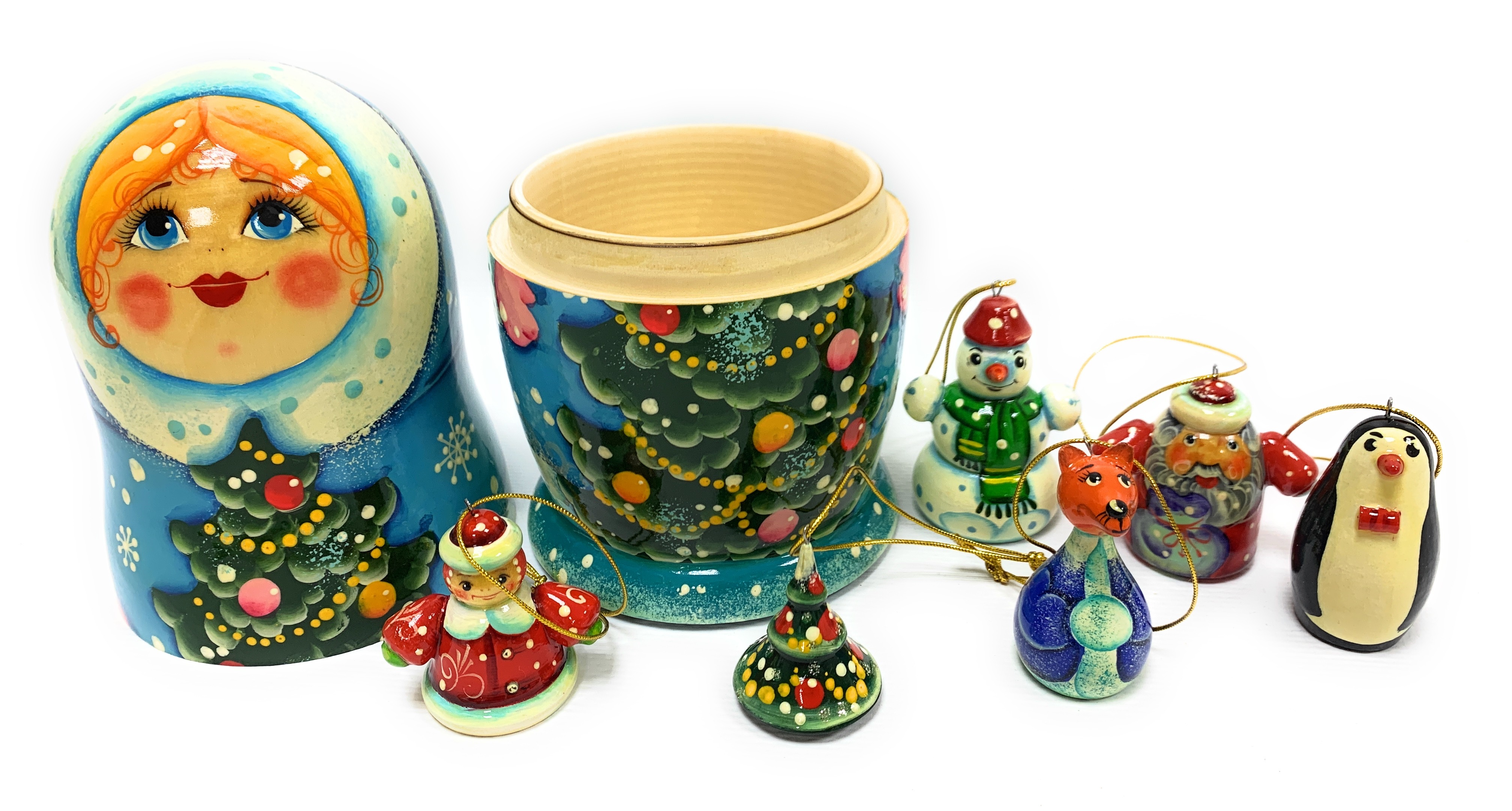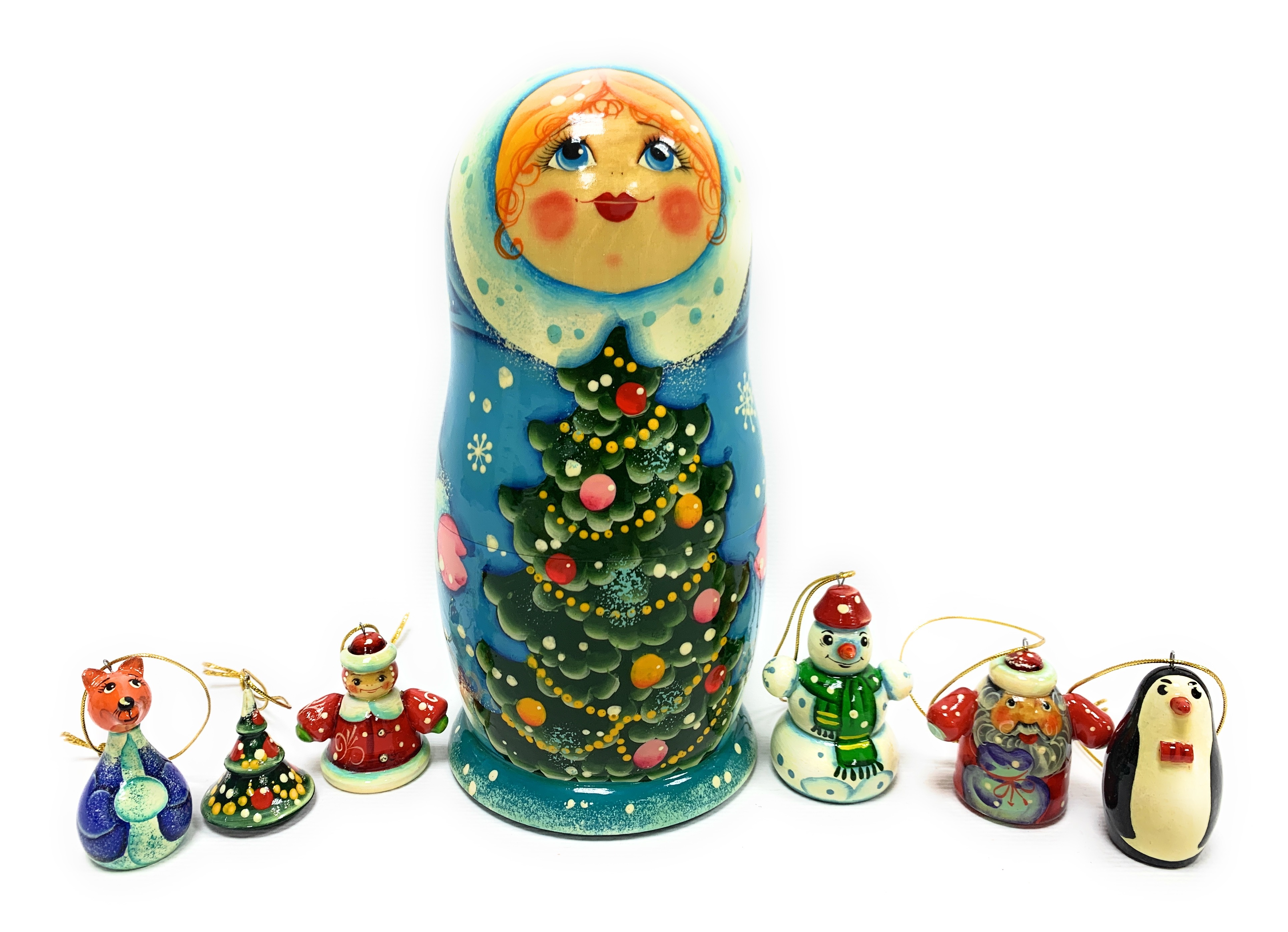 Матрешка авторская "Снегурочка с друзьями". Ручная работа
