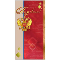 Открытка Русский дизайн Поздравляем! Герб РФ на красном