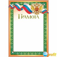 Грамота Русский дизайн, зеленая рамка с гербом (А4, 190г) 10 листов