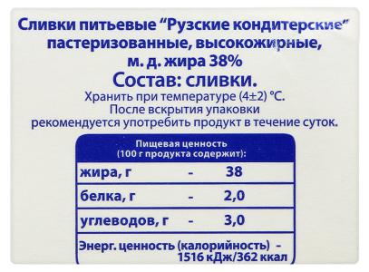 Сливки "Рузские" для взбивания 38%, 500г