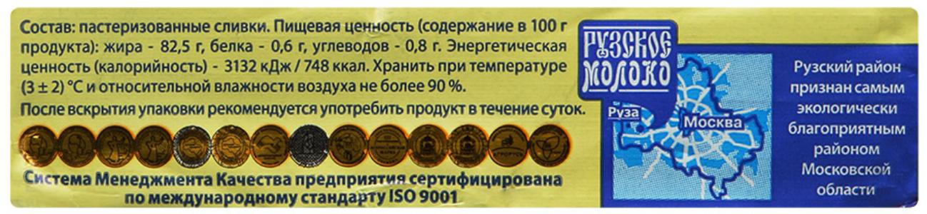 Масло "Рузское" сливочное традиционное 82,5%, 175г