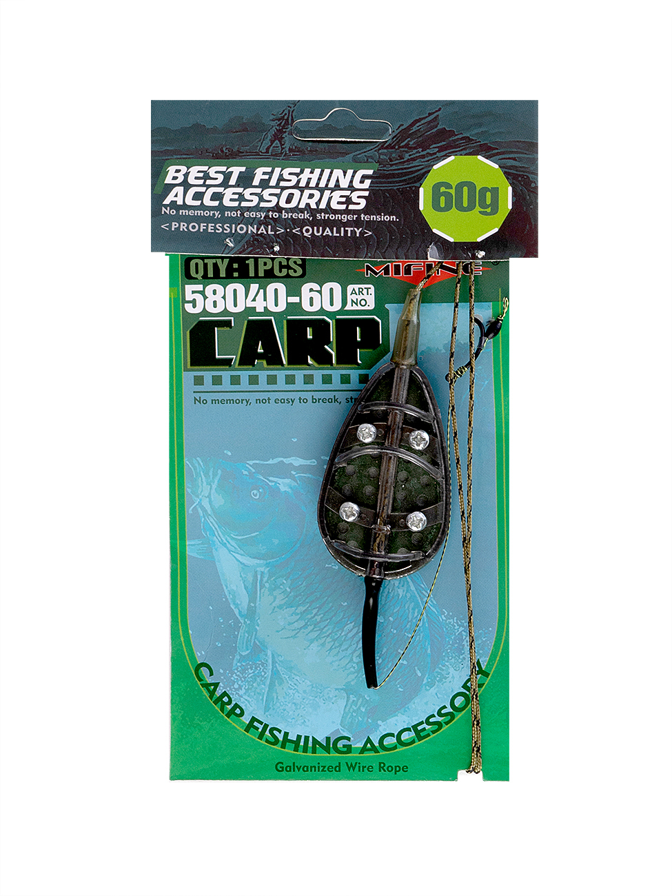 Методный монтаж для ловли карпа, карася, форели и других рыб, вес кормушки 60гр