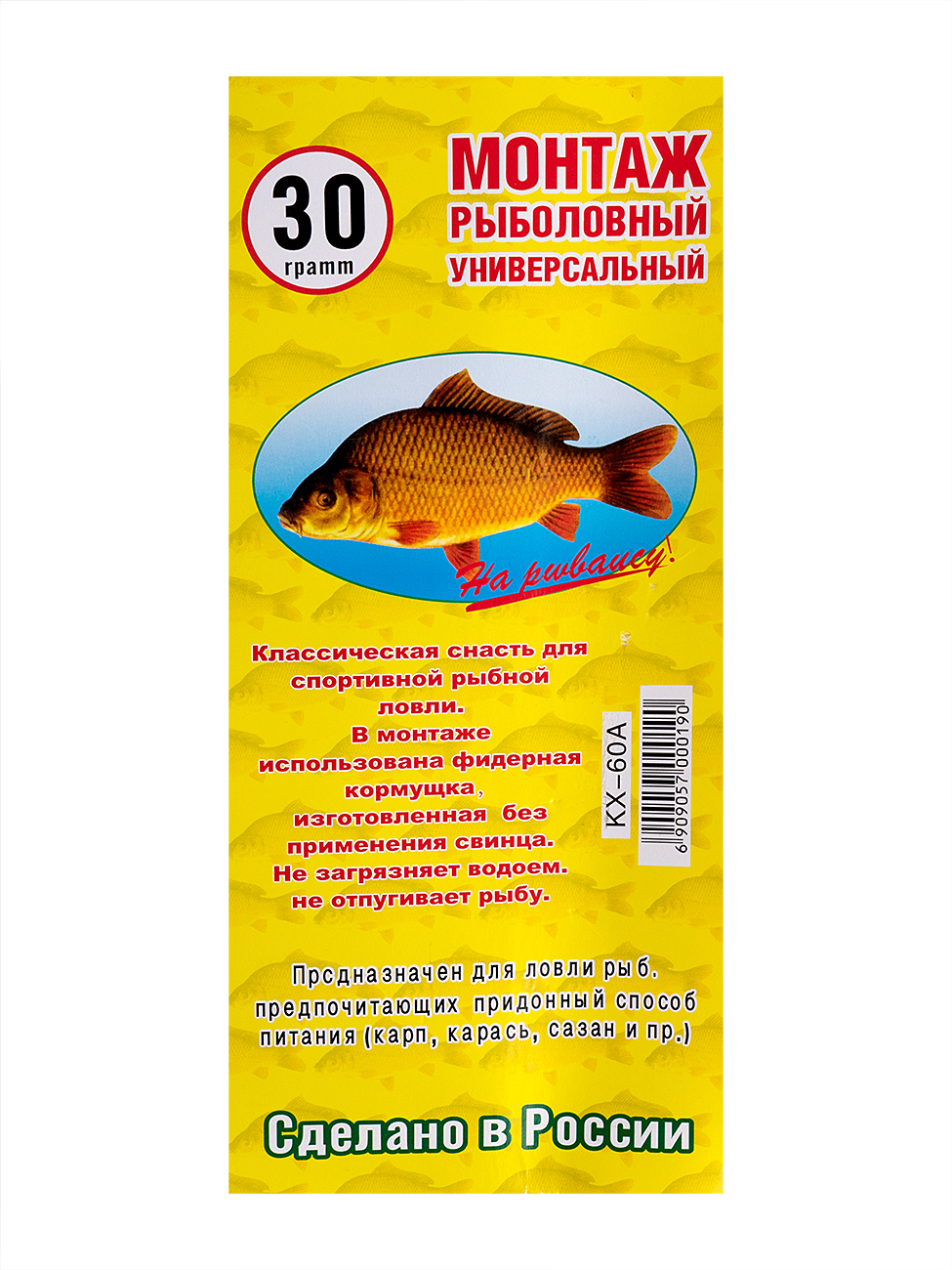 Рыболовный монтаж для ловли карася, карпа, плотвы и других рыб, вес 30гр