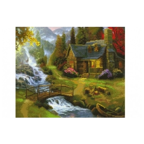 Рыжий кот Набор алмазной вышивки Домик у горного водопада (ACJ001) 60х50 см