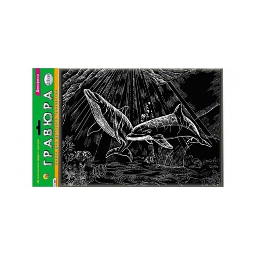 Гравюра Рыжий кот Дельфины, в пакете с ручкой (Г-2609) серебристая основа