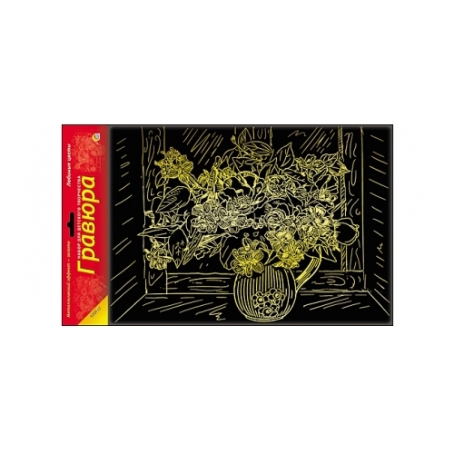 Гравюра Рыжий кот Любимые цветы, в пакете с ручкой (Г-6136) золотистая основа