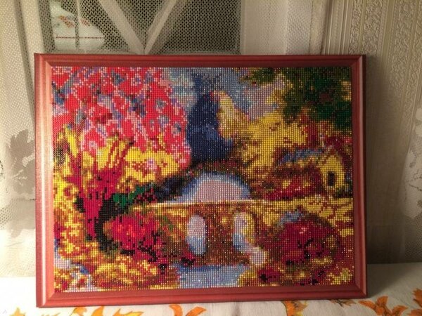 Гравюра Рыжий кот Котята, в пакете с ручкой (Г-2597) золотистая основа