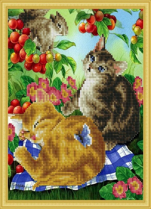 1 мозаика Рыжий кот котята на природе