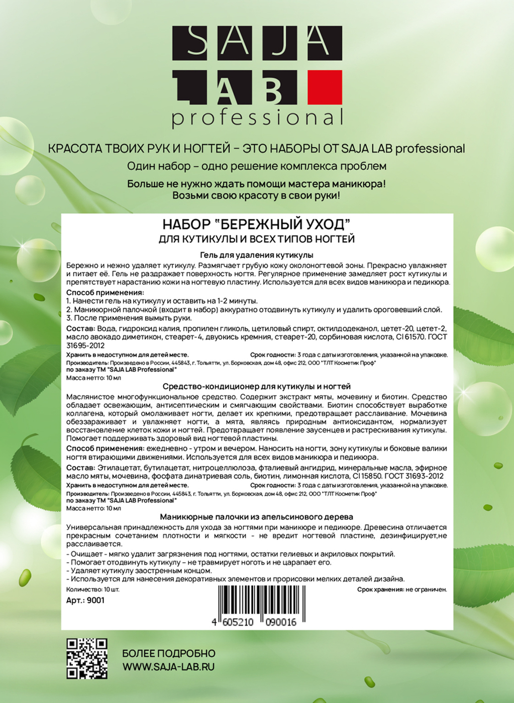 SAJA LAB professional Комплект средств "Бережный уход" для кутикулы и всех типов ногтей.