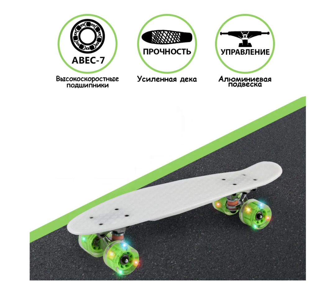 Скейтборд Самый Лучший Возраст детский 56х15см Светящиеся колеса 56 х 15см