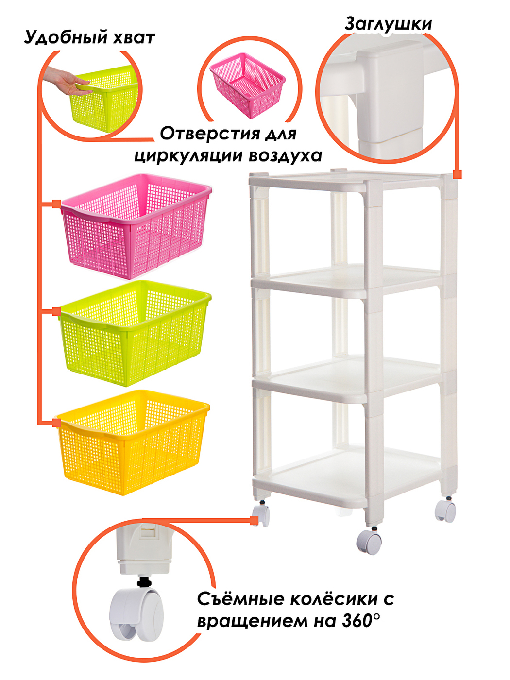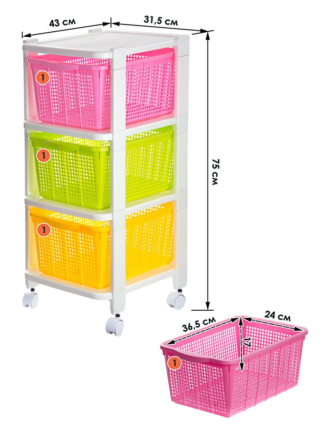 Этажерка F-2490, 3 секц., Полипропилен, 45,5х29,5х70 см