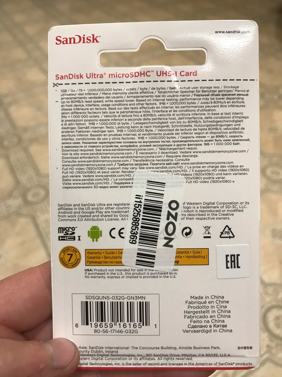 Карта памяти SanDisk Ultra SDHC Class 10 UHS-I 80MB/s