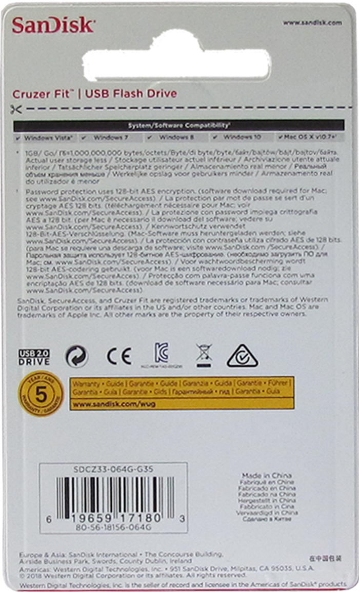 USB Флеш-накопитель SanDisk Cruzer Fit 64 ГБ, черный