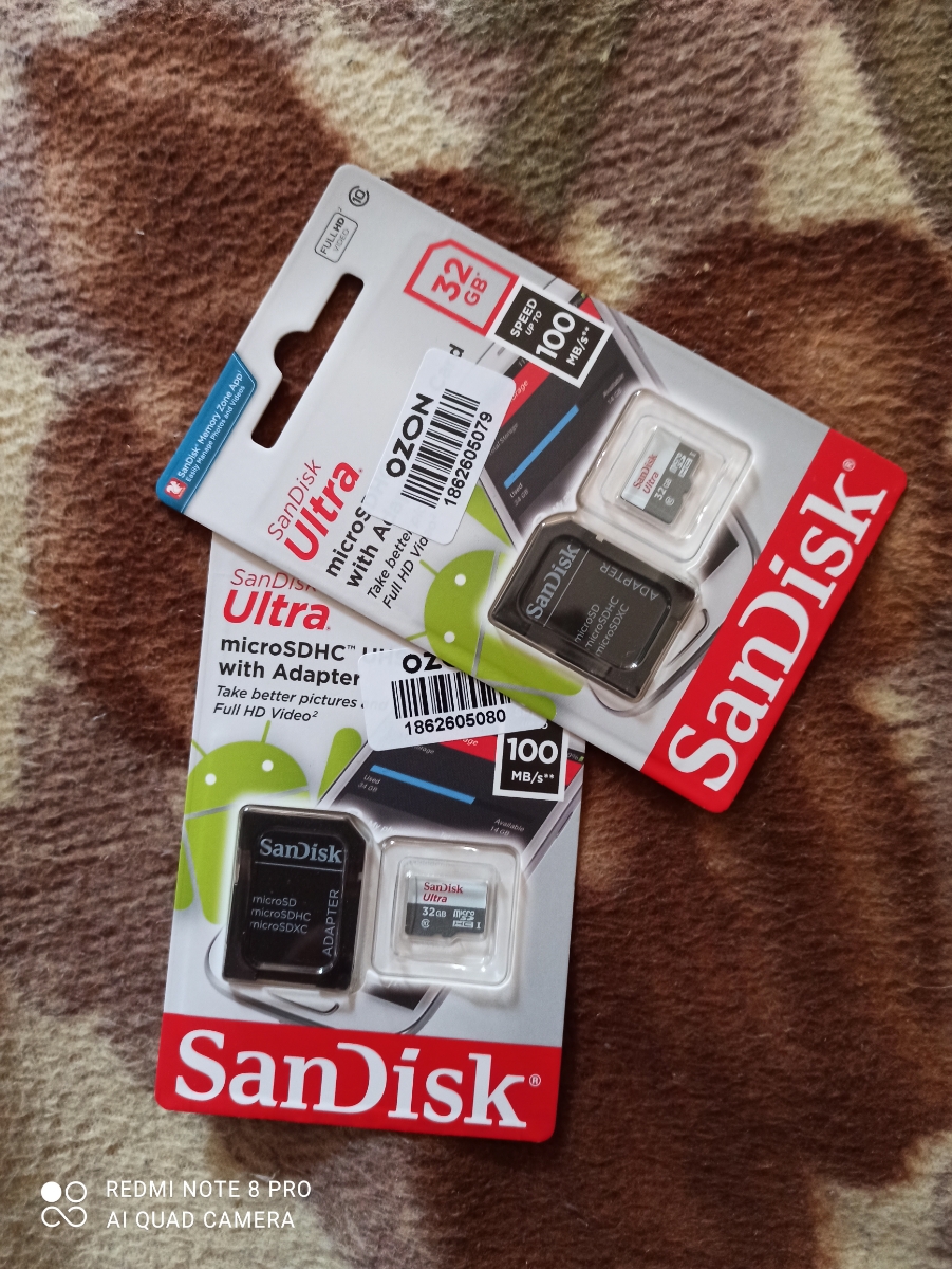 Карта памяти SanDisk Ultra microSDHC Class 10 UHS-I 80MB/s + SD adapter