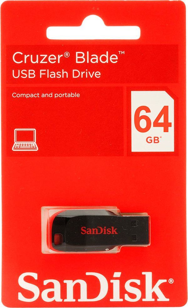 USB Флеш-накопитель SanDisk Cruzer Blade 64 ГБ, черный, красный