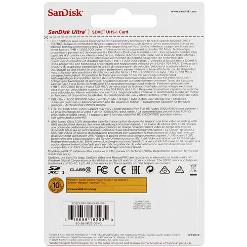 Карта памяти SDXC SanDisk Ultra 64 ГБ (SDSDUN4-064G-GN6IN)