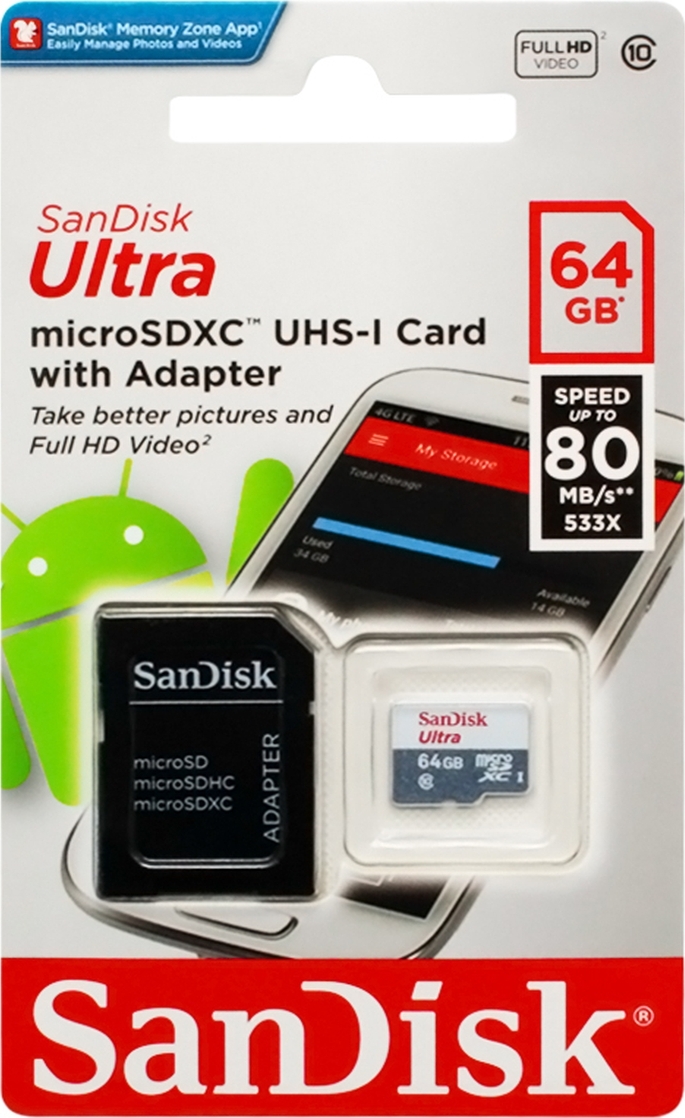 Карта памяти SanDisk Ultra 64 ГБ (SDSQUNS-064G-GN3MA)