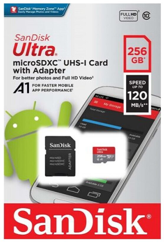 Карта памяти SanDisk Ultra 256 ГБ (SDSQUA4-256G-GN6MA)