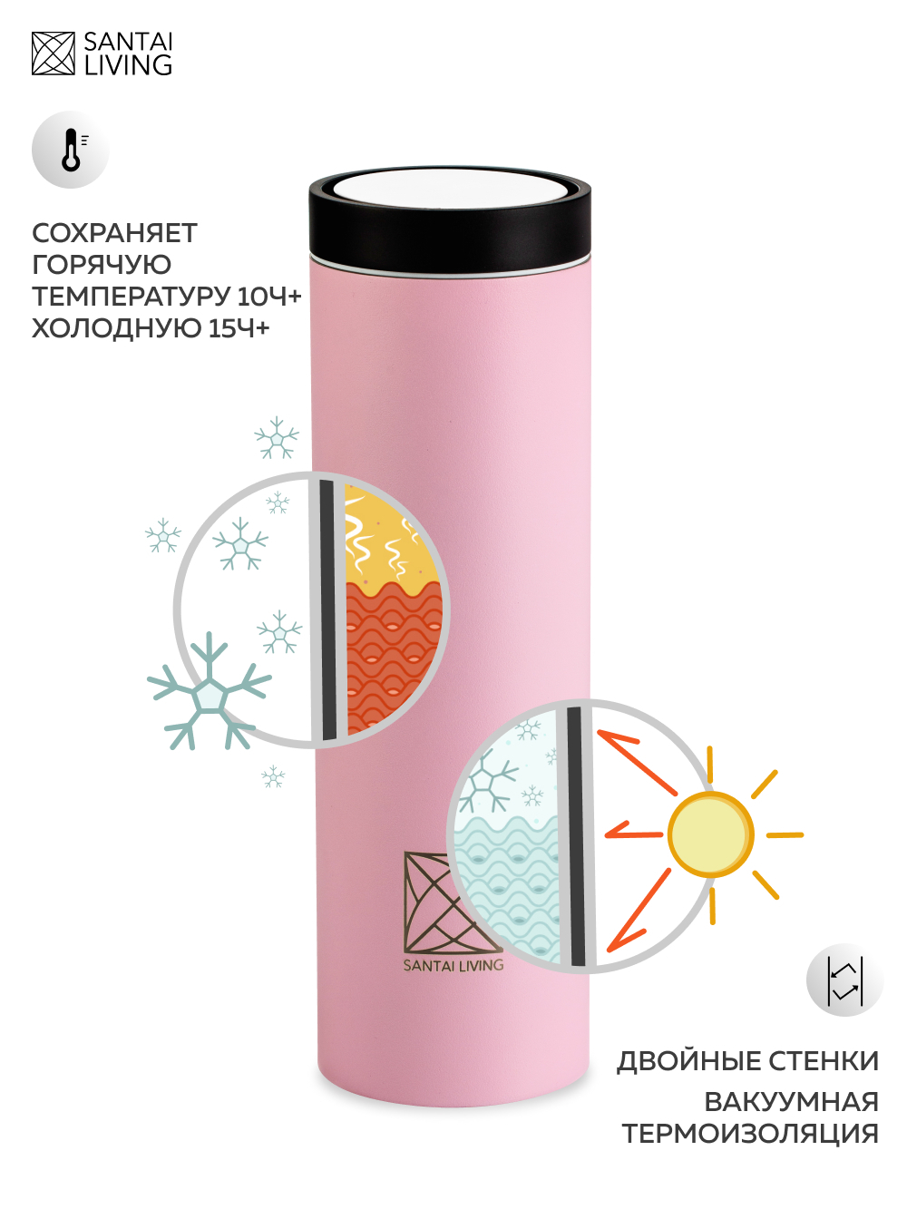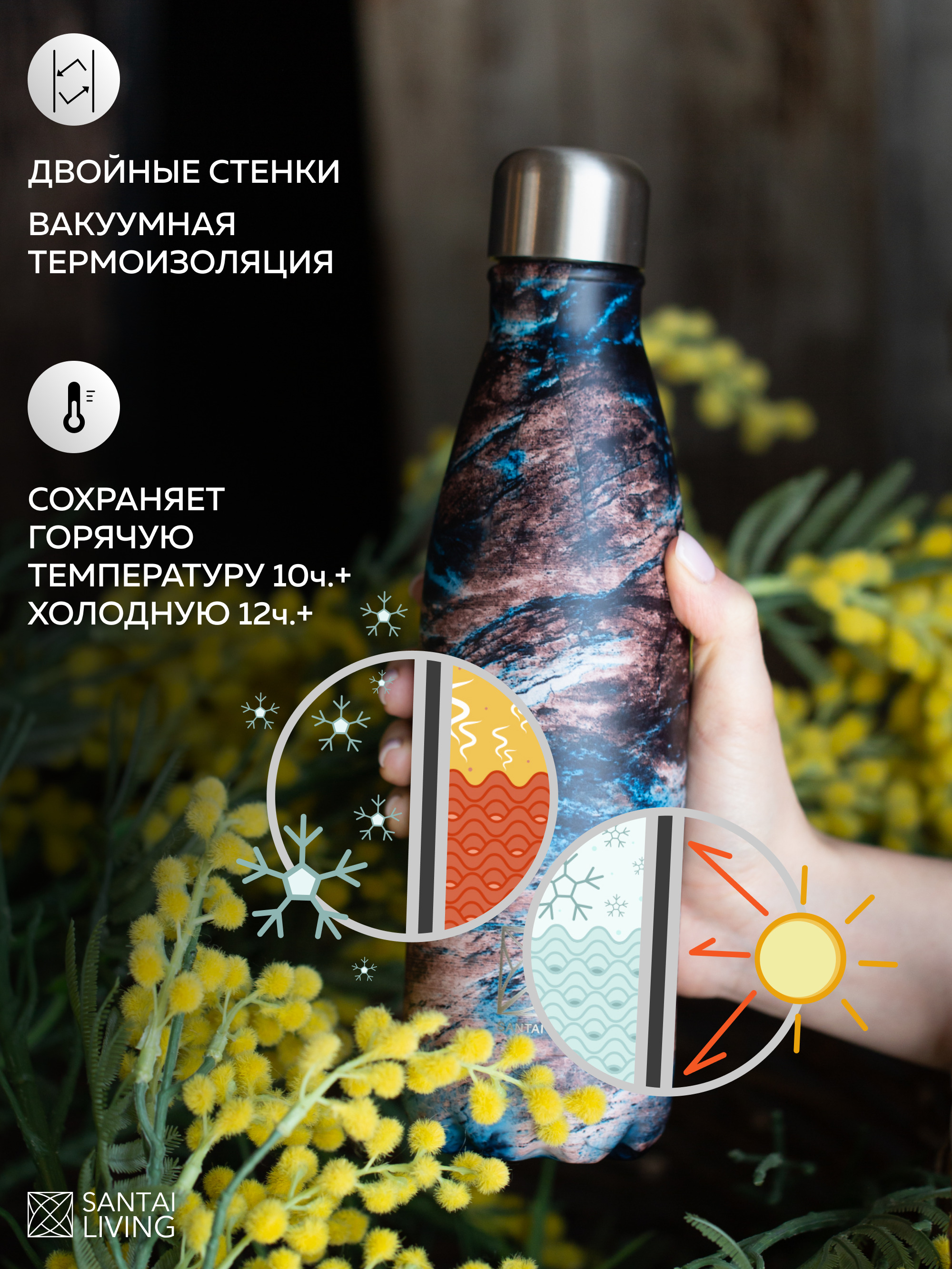 Термобутылка, Термос Вакуумный, Ударопрочный корпус, Непроливайка Santai Living, 0,5 л