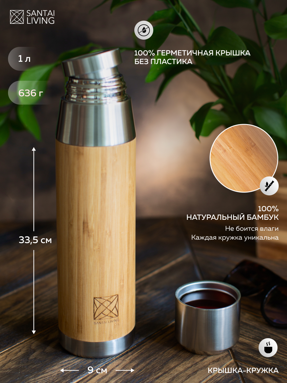 Термос, Термобутылка Крышка-чашка, Вакуумный, Непроливайка Santai Living, 1 л