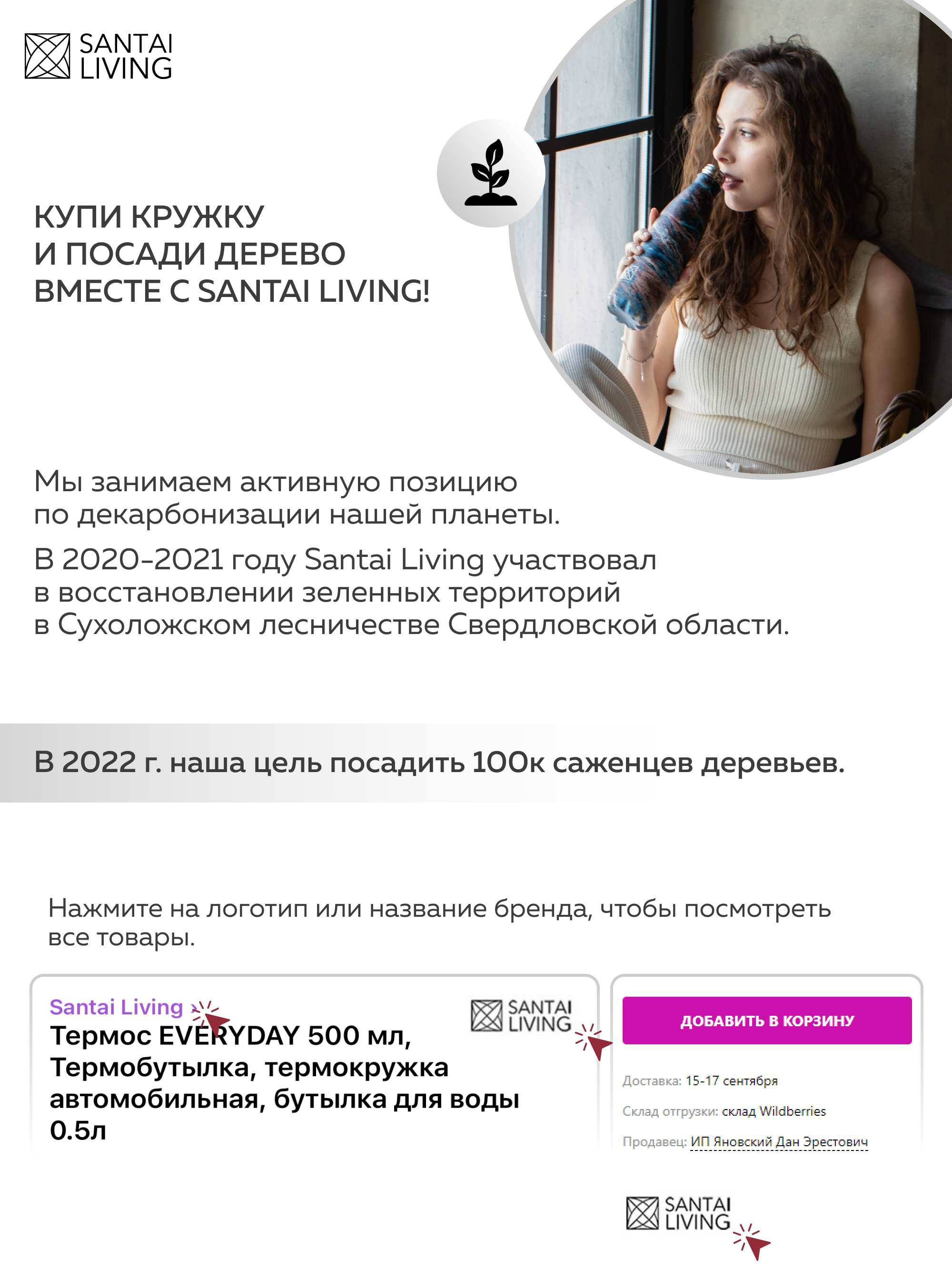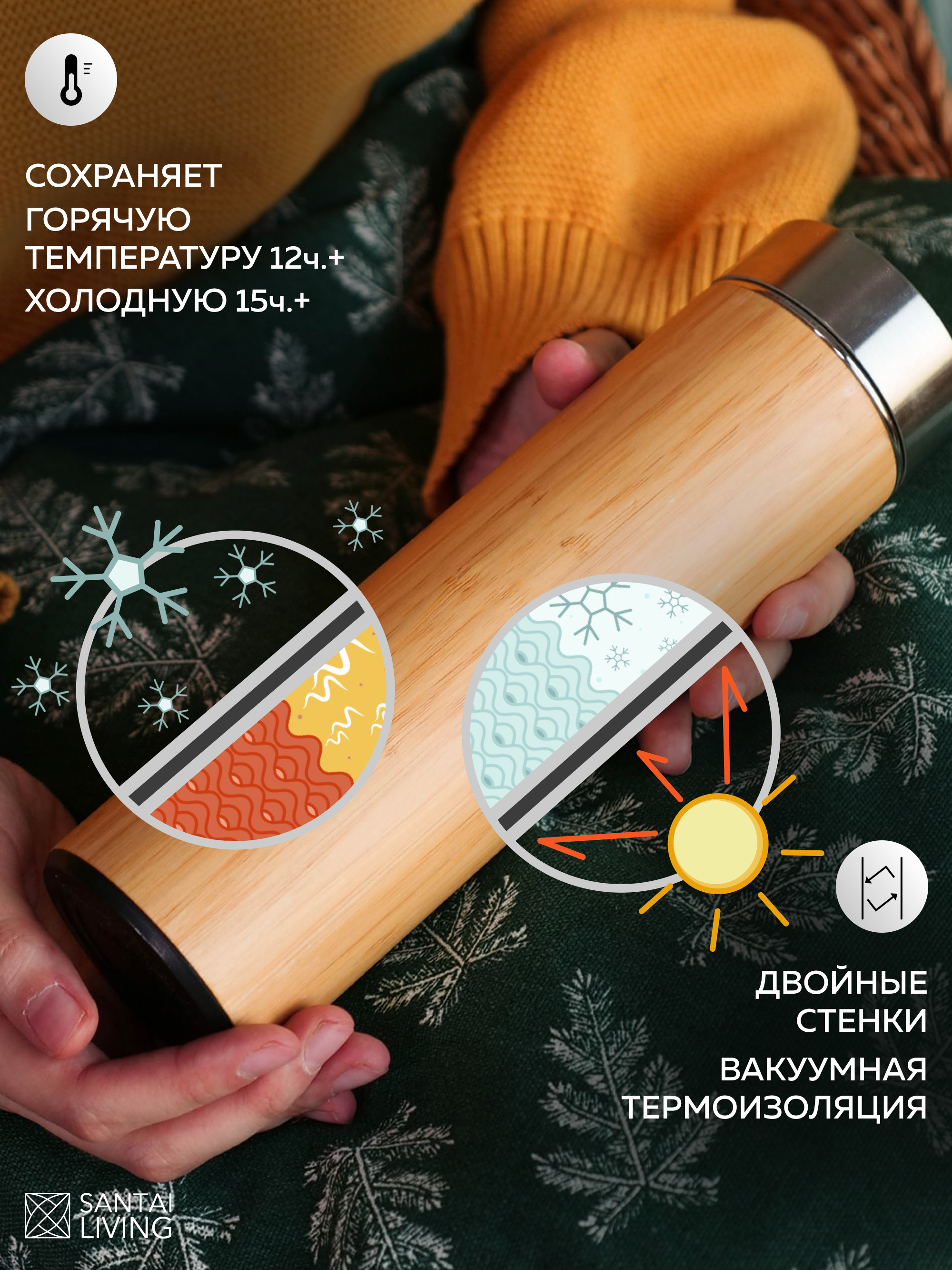 Термобутылка Вакуумный, Ударопрочный корпус, Непроливайка Santai Living, 0,5 л