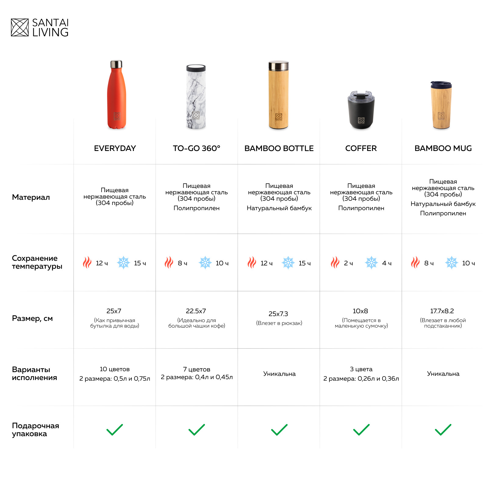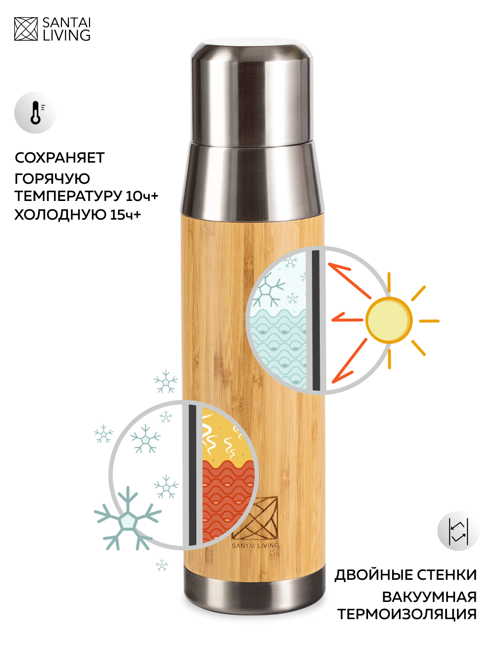 Термос, Термобутылка Вакуумный, Ударопрочный корпус Santai Living