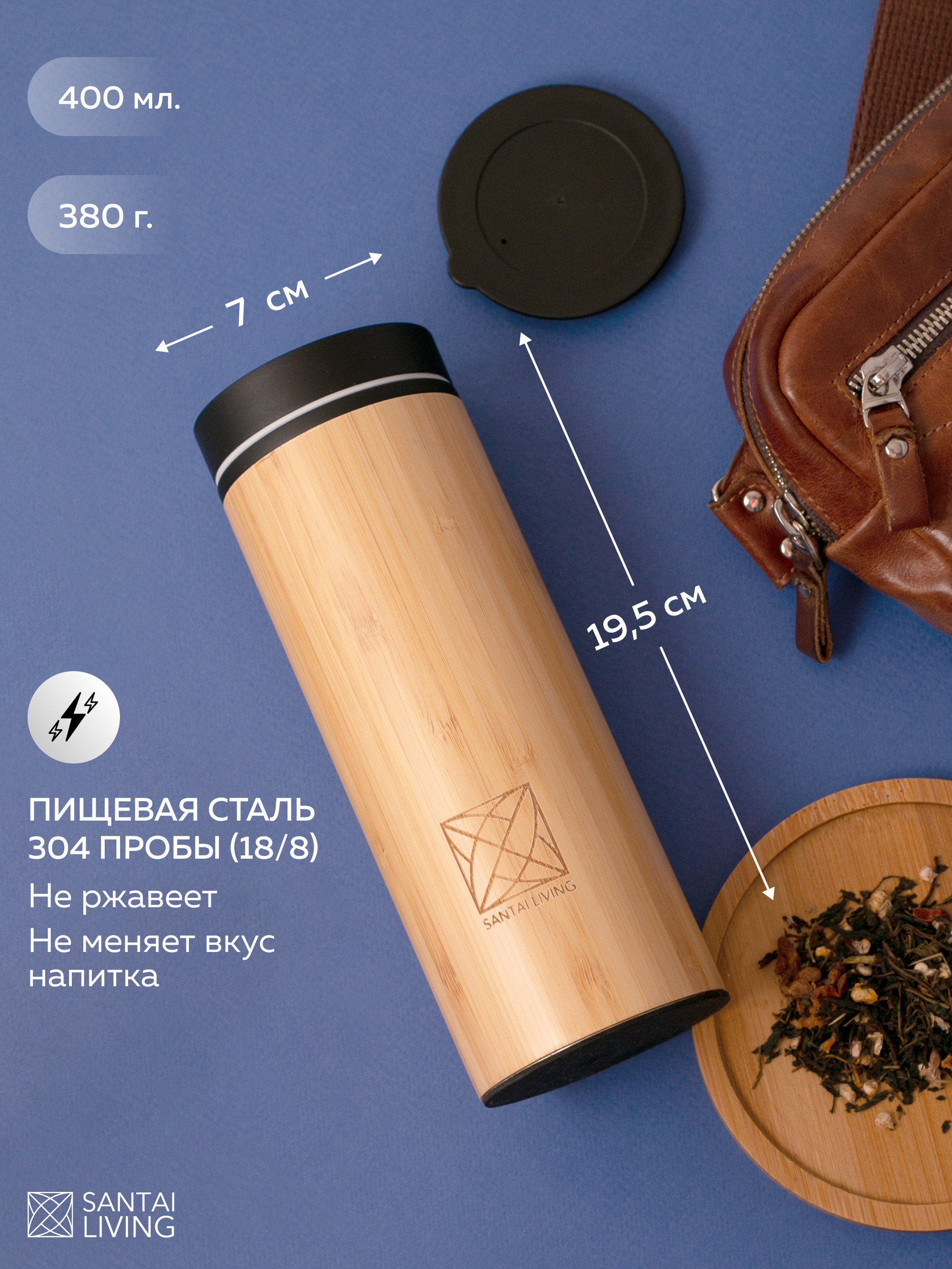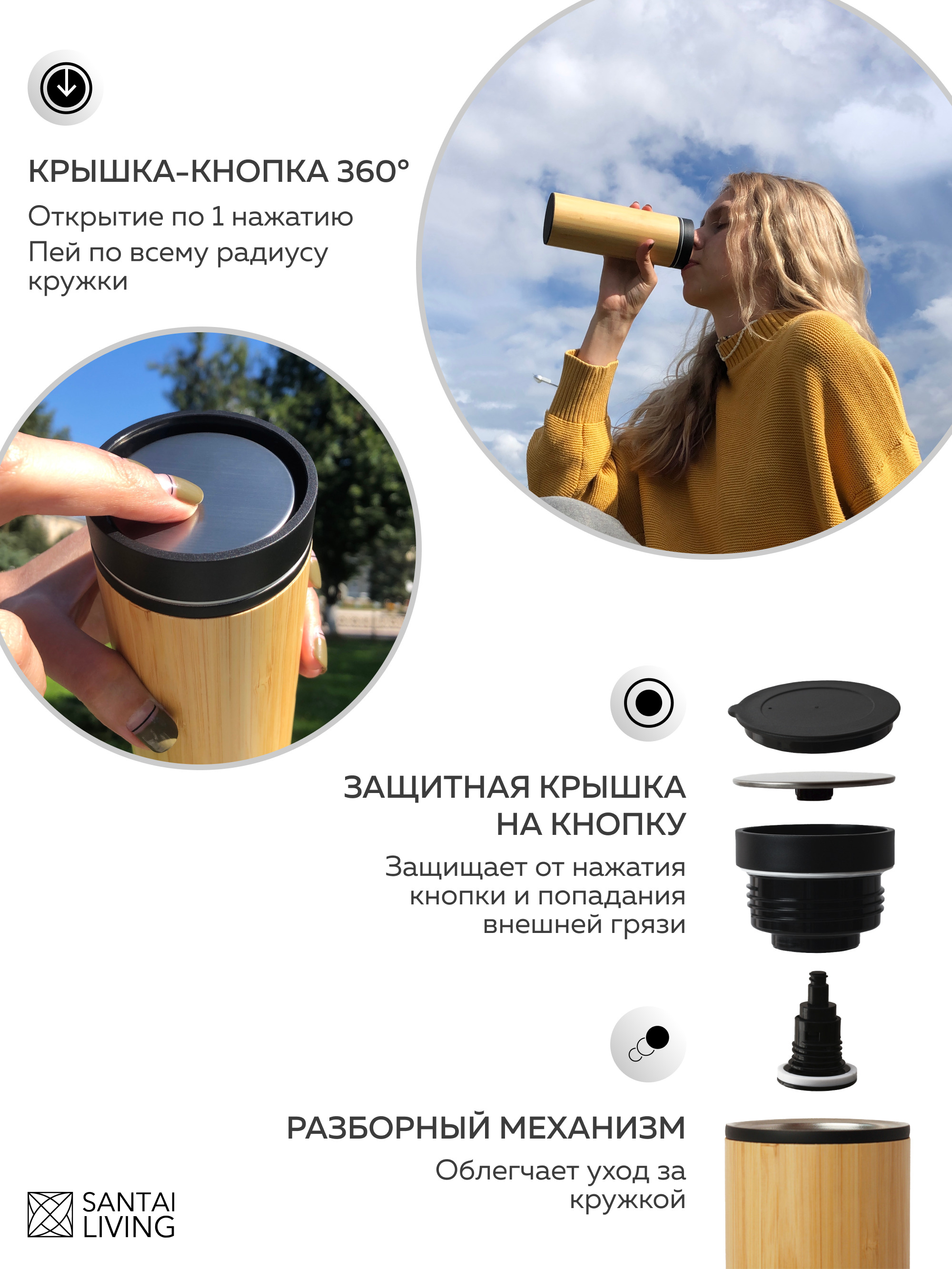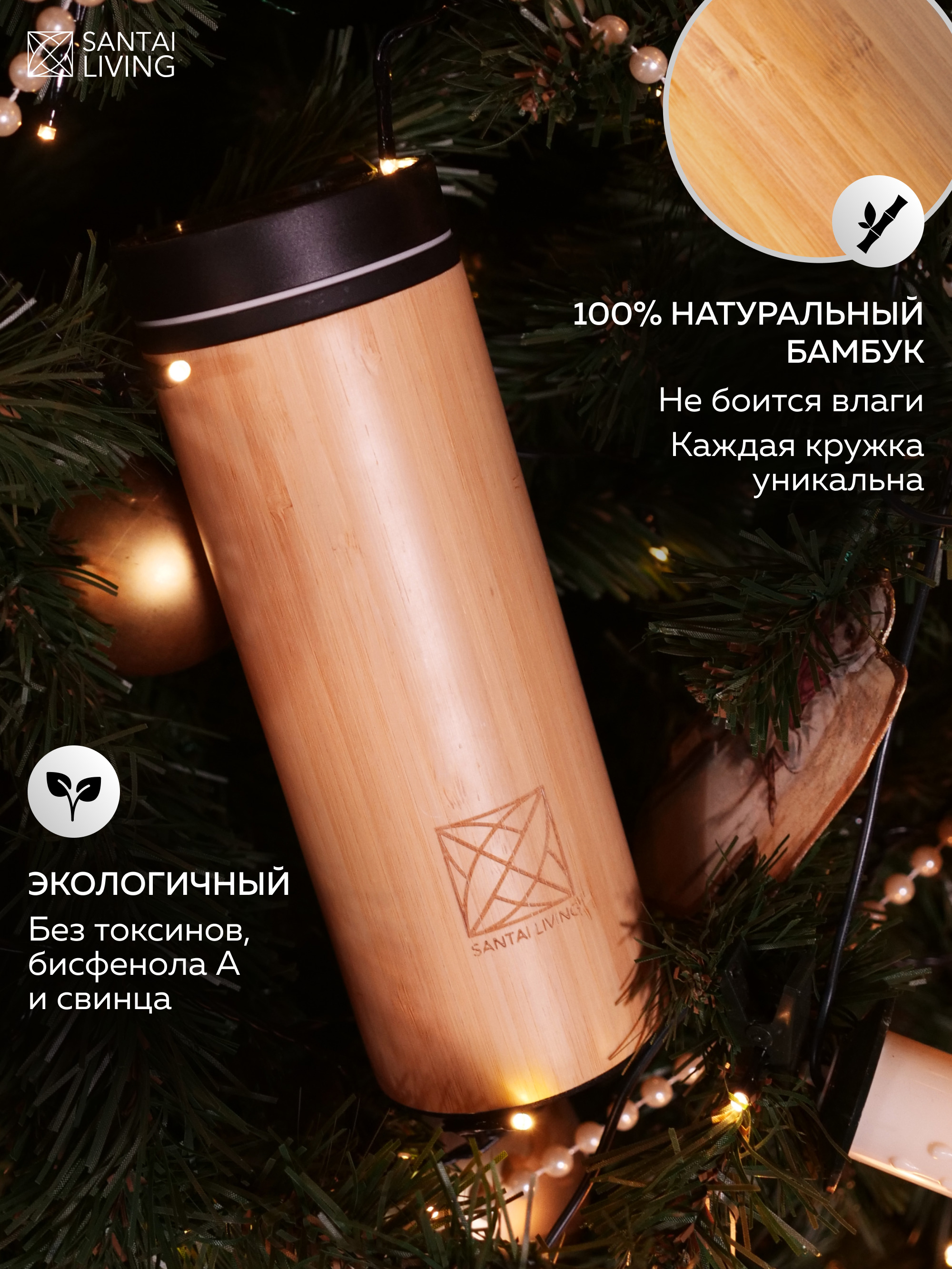 Термокружка Santai Living 100% бамбук с ручкой и крышкой, 0.45 л