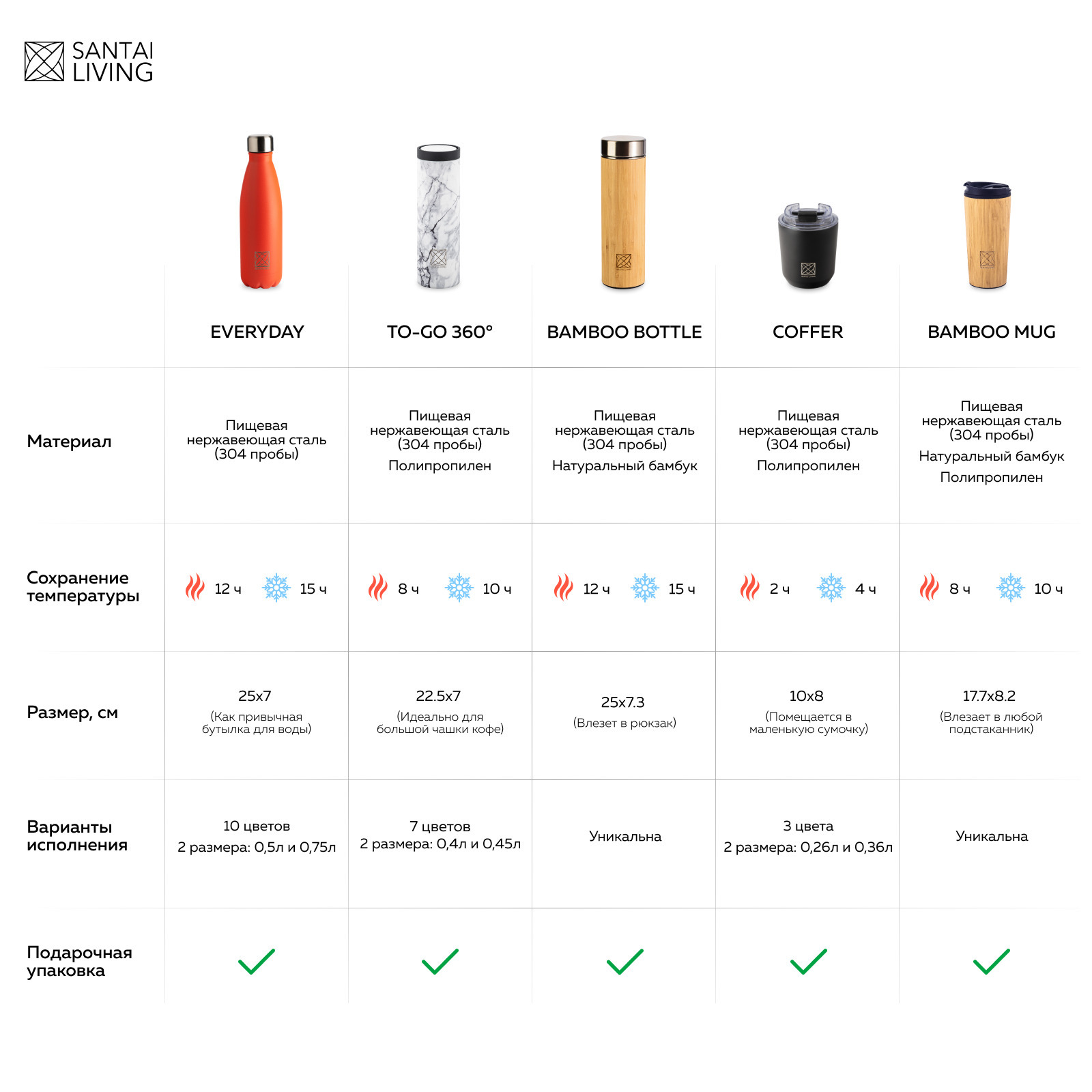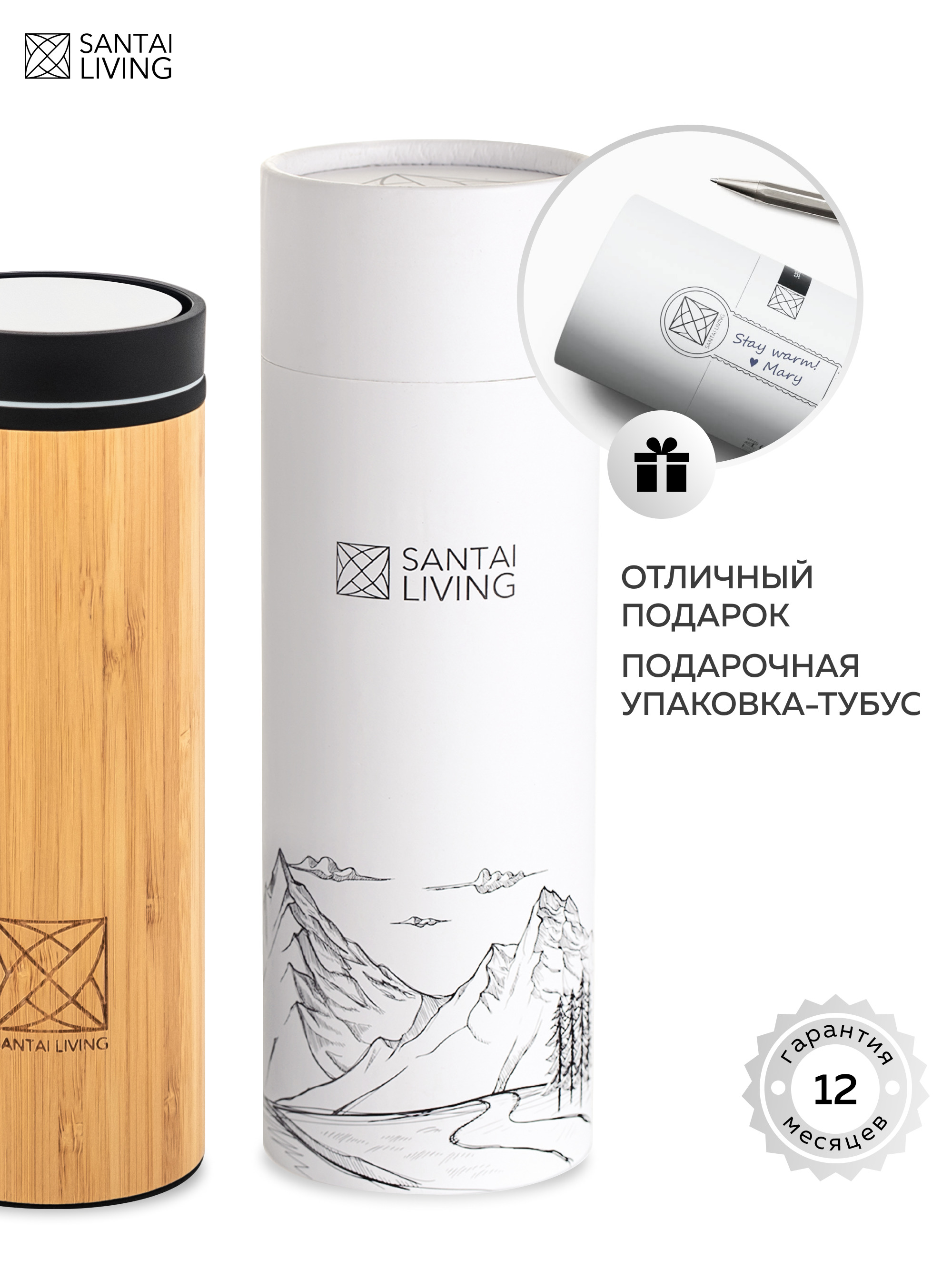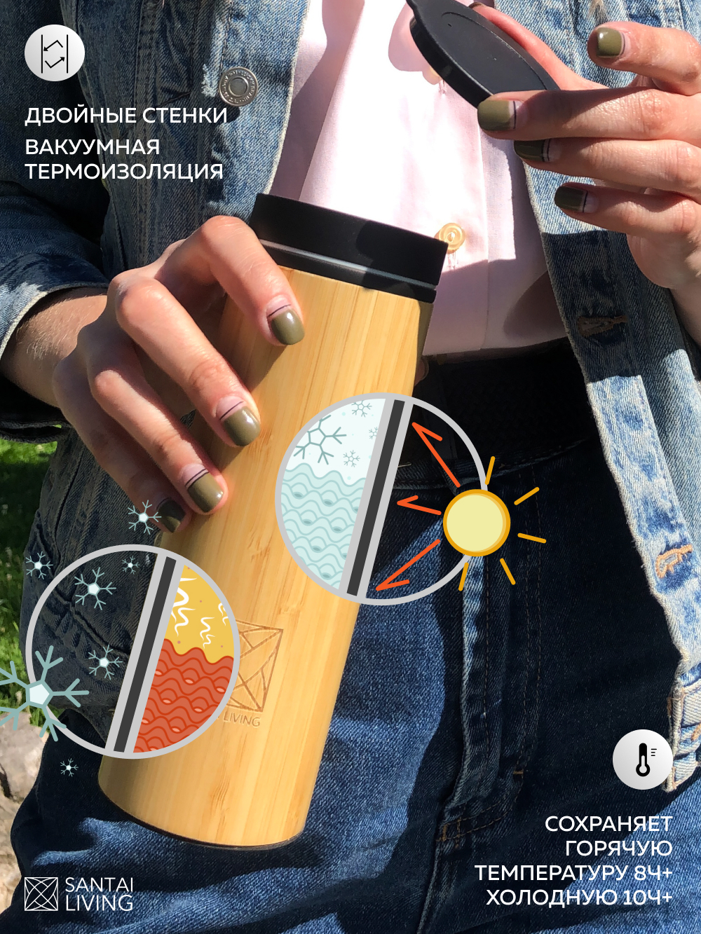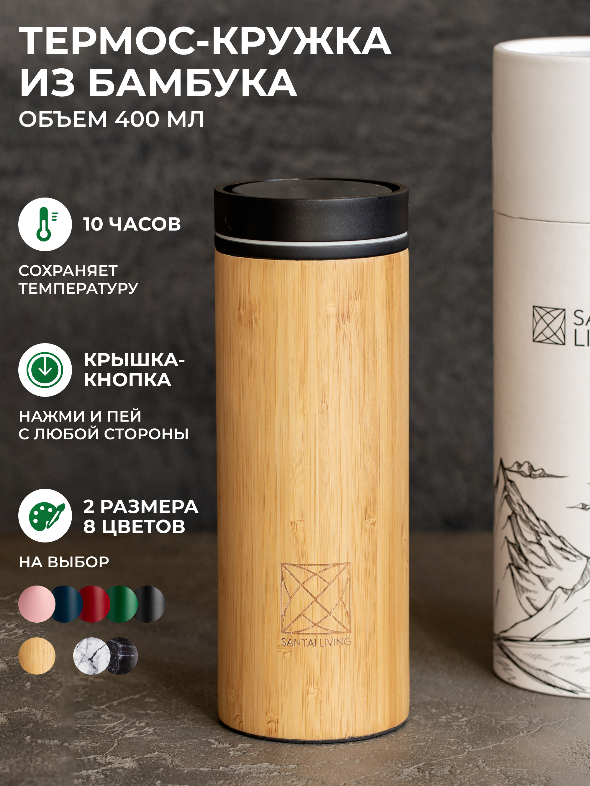 Термокружка Santai Living 100% бамбук с ручкой и крышкой, 0.45 л