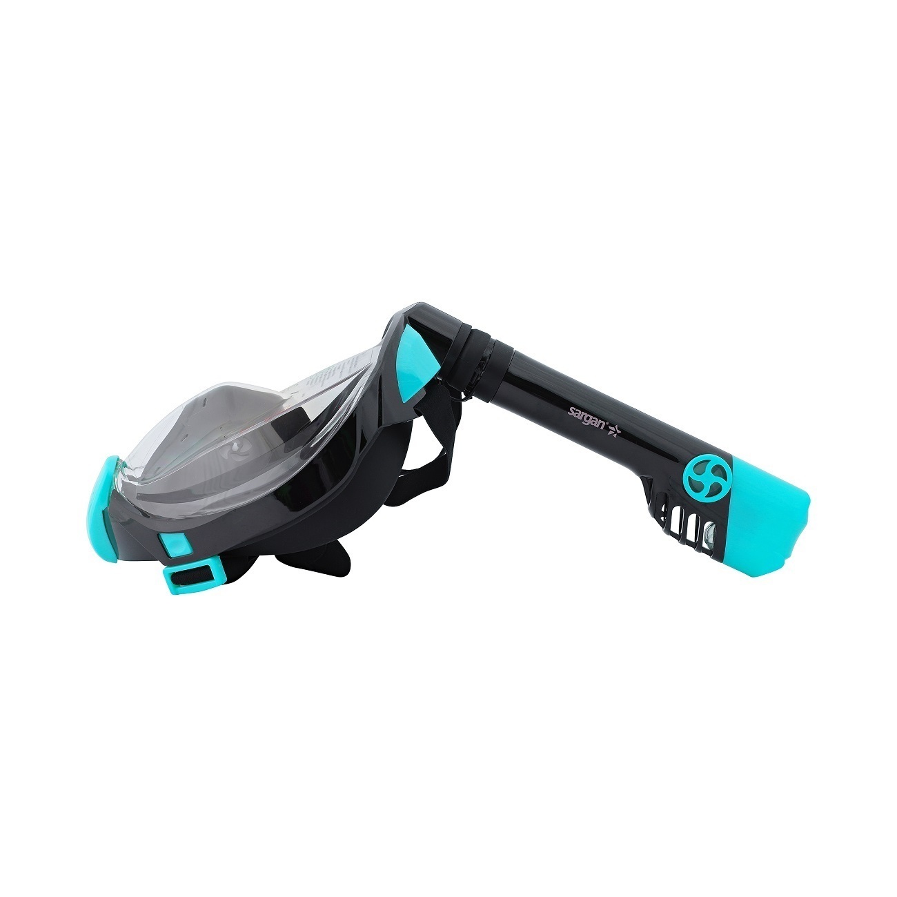 Полнолицевая маска для плавания (снорклинга) SARGAN Галактика Премиум цвет черный/бирюзовый