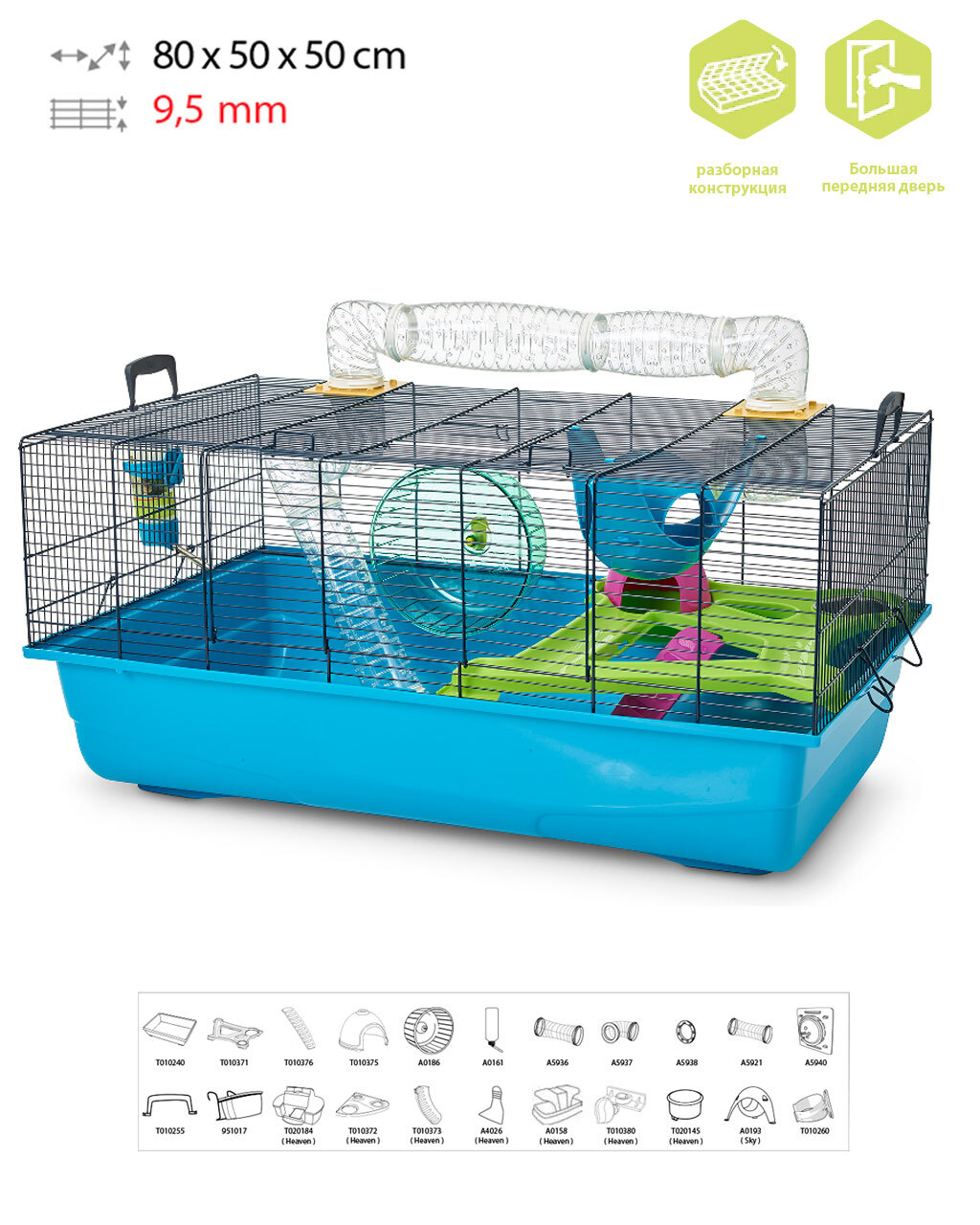 Клетка для хомячков с туннелями "SAVIC" "Hamster sky metro" 80x50x50 см, голубой