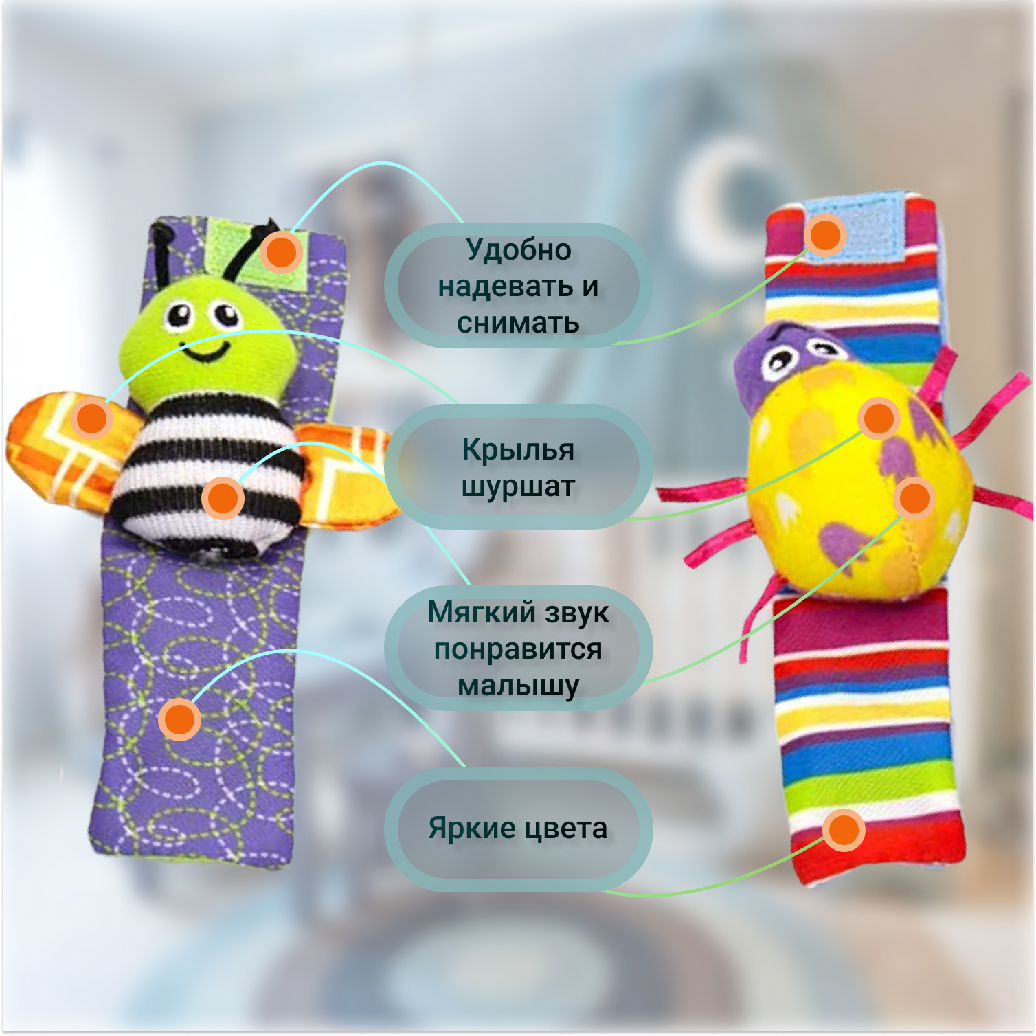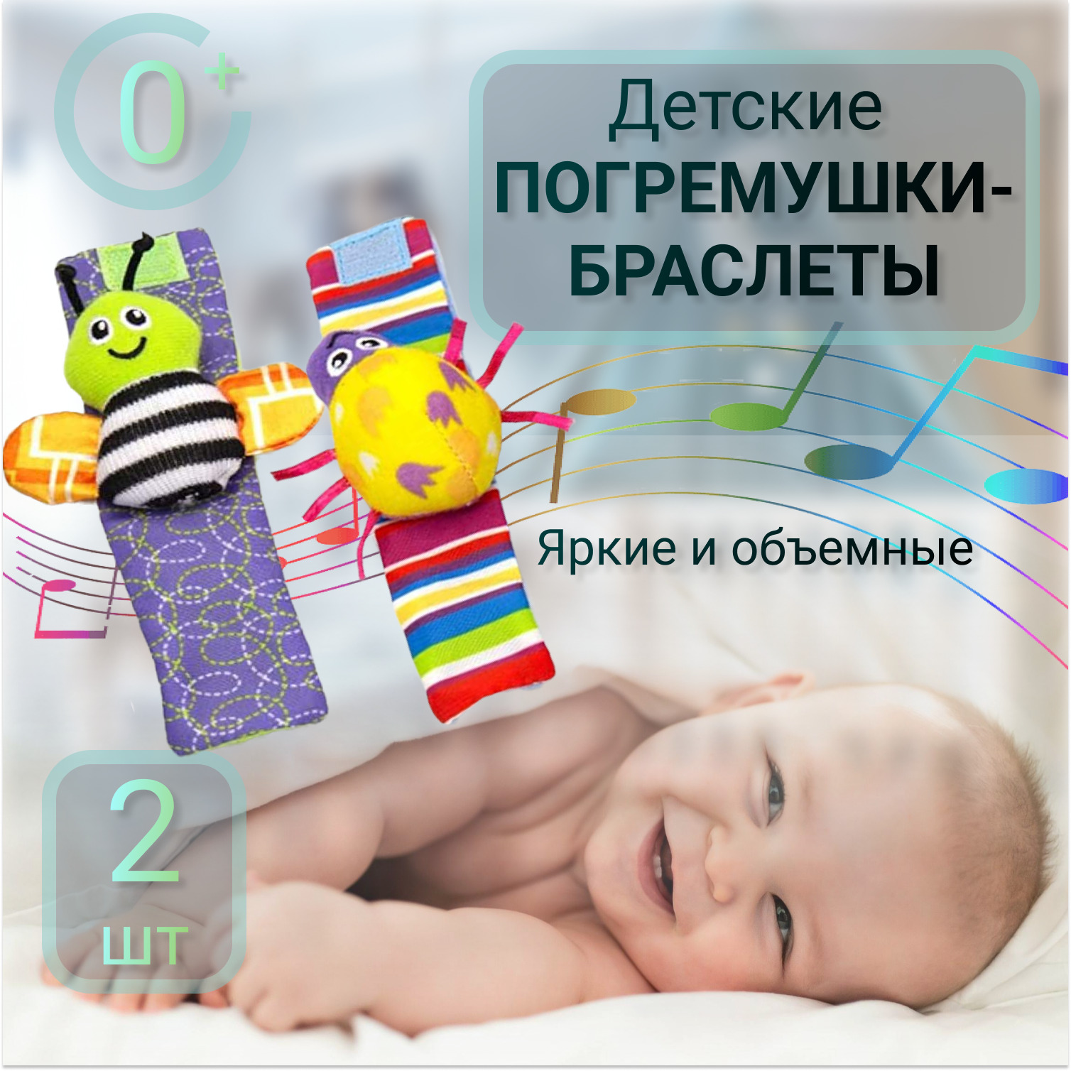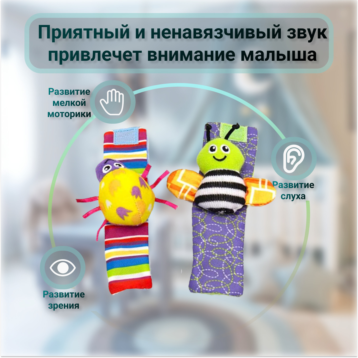Браслет-погремушка тканевая (2шт.)/детская игрушка / игрушки погремушки для новорожденных