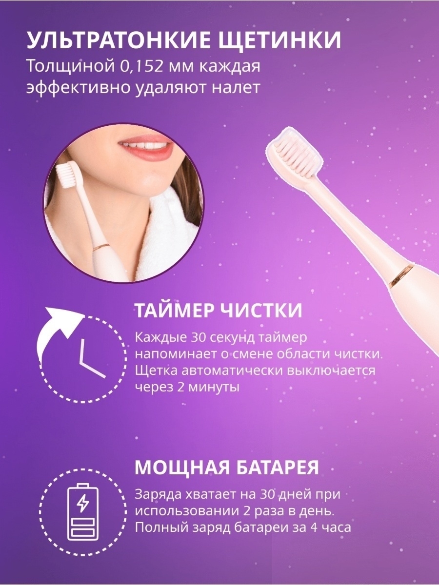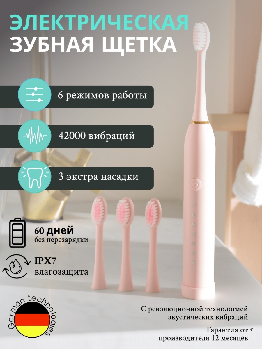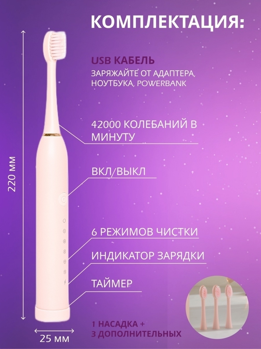 Электрическая зубная щетка SB Ультразвуковая электрическая щетка , розовый