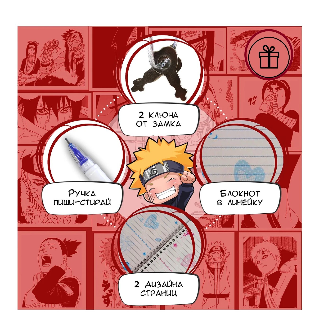 Детский блокнот с рабочим ЗАМКОМ и ручкой "Аниме". В комплекте: блокнот (18*11см) с замком, шариковая ручка и