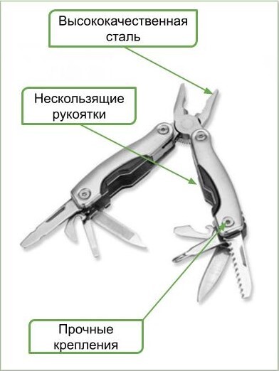 Мультитул / Мультитул 10 в 1 / Мультиинструмент походный складной / Серебро